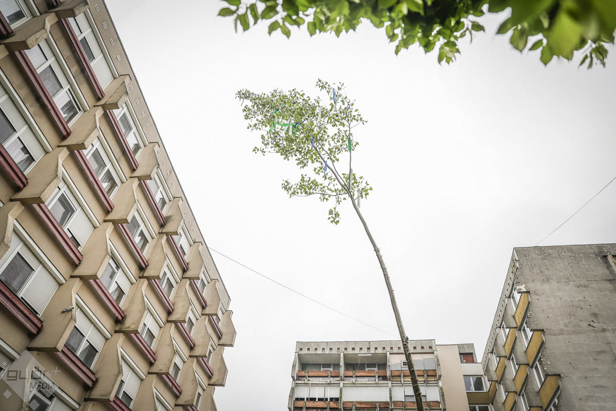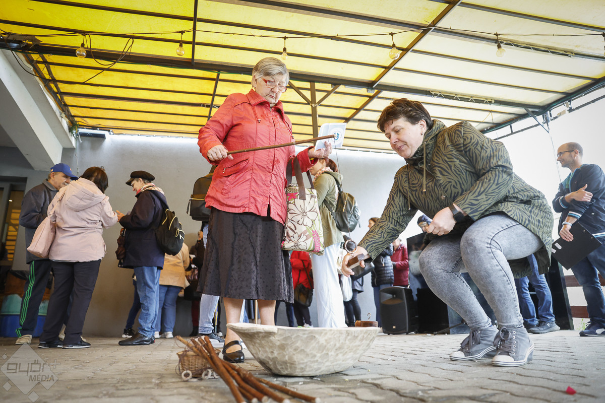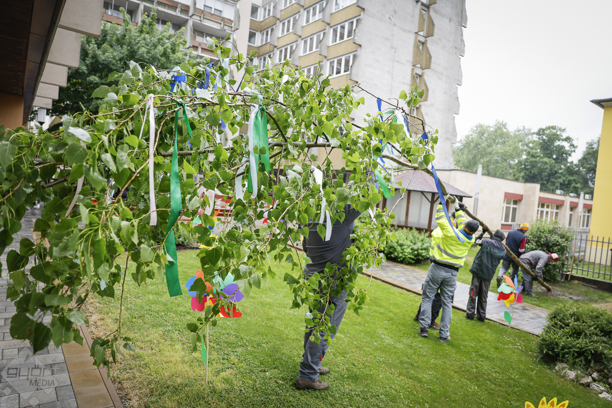 Bár a szabadtérre tervezett vetélkedőt fedett helyen bonyolították, a májusfa díszítése mindenkit kicsalogatott az udvarra.