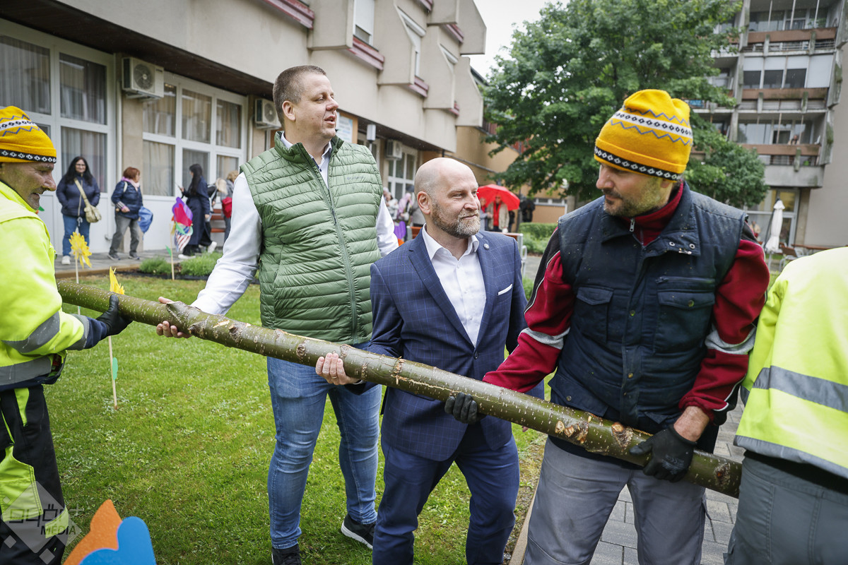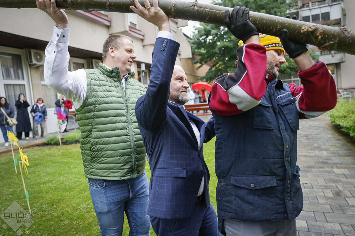 Dr. Fekete Dávid képviselő szólt a régi népi hagyományok ápolásának fontosságáról, felidézve a különböző tájegységek eltérő szokásait. Kiemelte: „Mára a Kálóczy téren is hagyománnyá vált az idősek klubjainak májusfa állítása, melynek legfontosabb eleme a lelkes és összetartó közösség. Olyan várost építünk, ahol jó fiatalnak lenni, családosnak lenni és ahol jó szépkorúnak lenni” – hangsúlyozta, majd megköszönte a résztvevők aktivitását, s azt, hogy a munkában eltöltött évtizedek után is gondolnak Győrre, alakítják a város életét.
