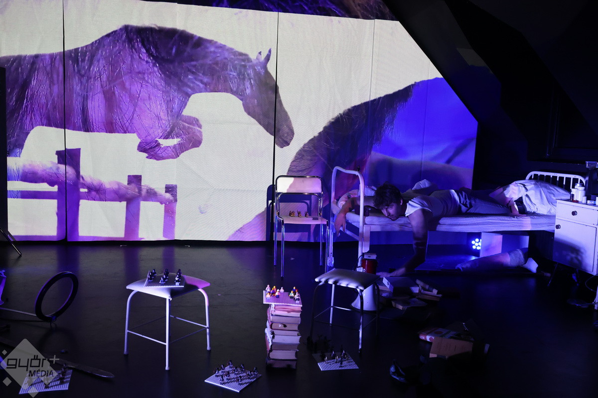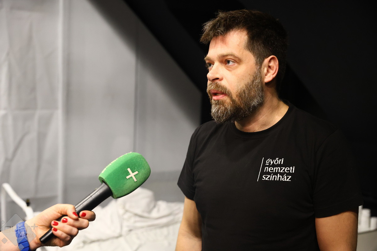 De mi a helyzet 2024-ben Győrben? „Nagy kihívás volt a legtöbb szereplős Shakespeare darabot monodrámává alakítani. Ezt Tibi találta ki, mi pedig beálltunk mögé és tettük a dolgunkat, de valóban más jellegű munka volt, mint ahogy általában rendezőként dolgozom, ahogy össze kell fognom egy csapatot.