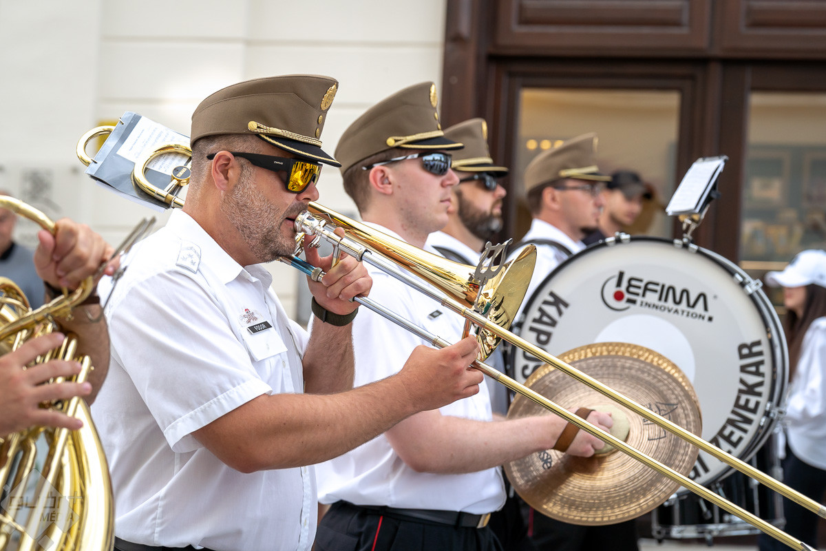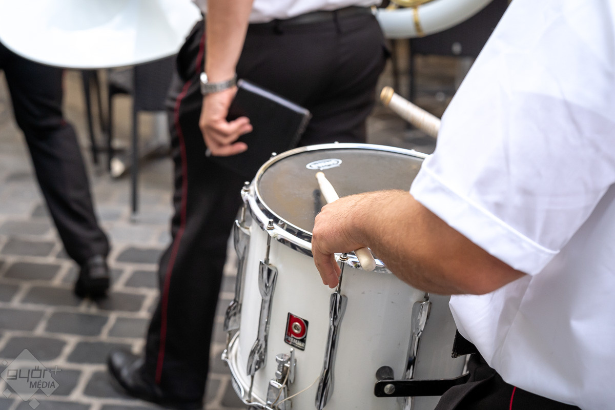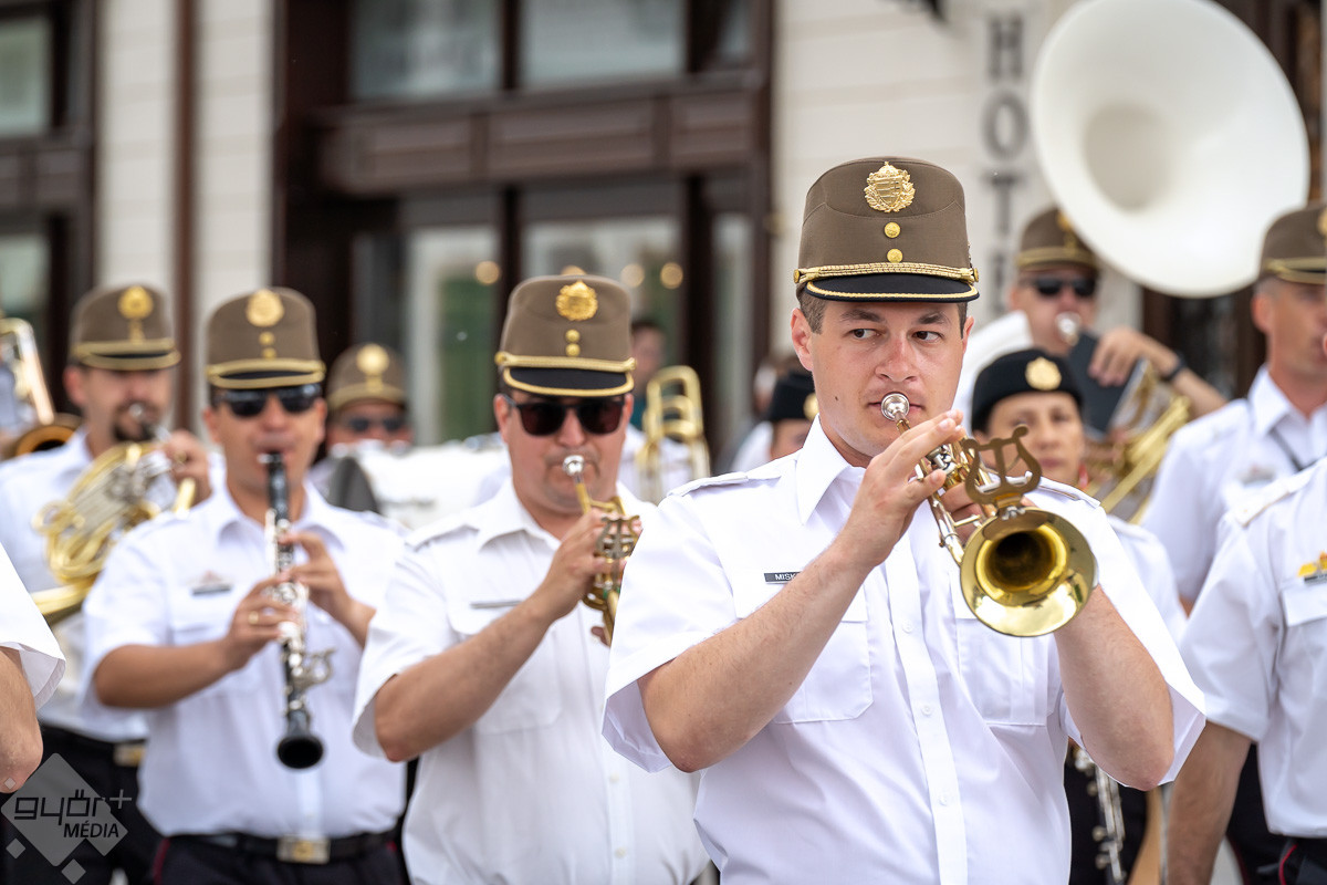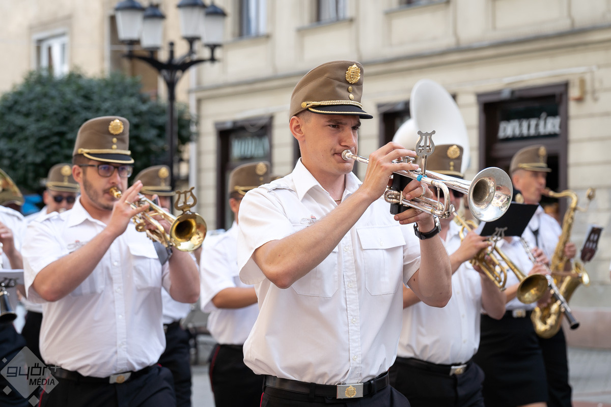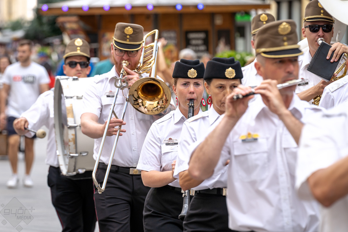 Rézfúvósok muzsikája töltötte be pénteken a belvárost, ma rendezik ugyanis I. Győri Regionális Katonazenekari Fesztivált.