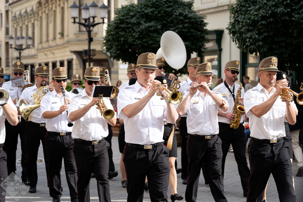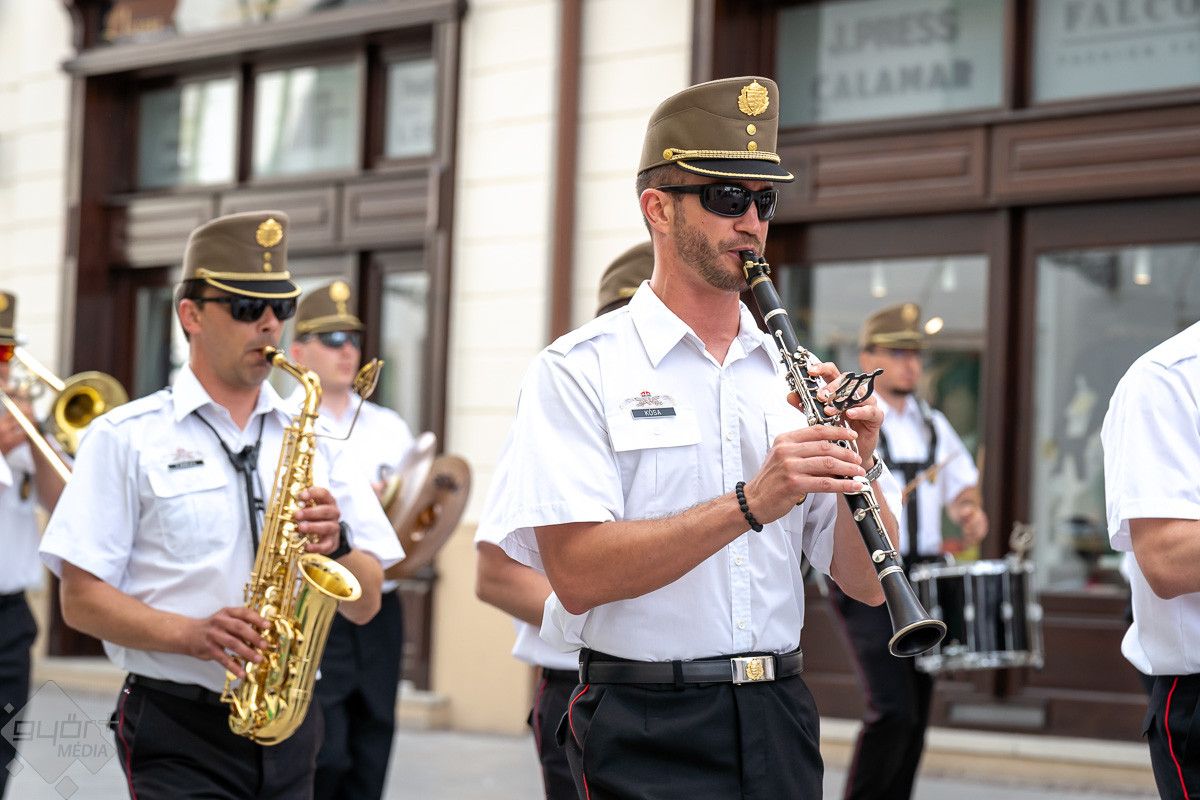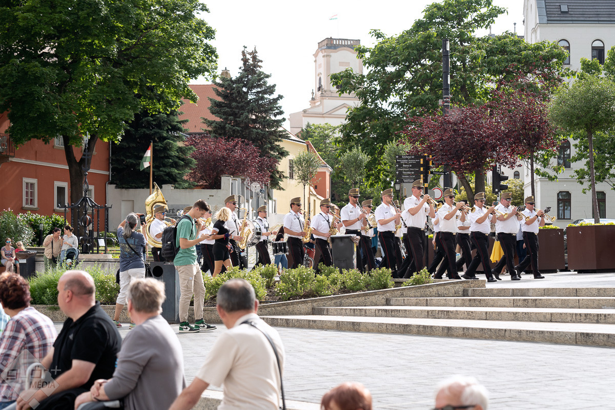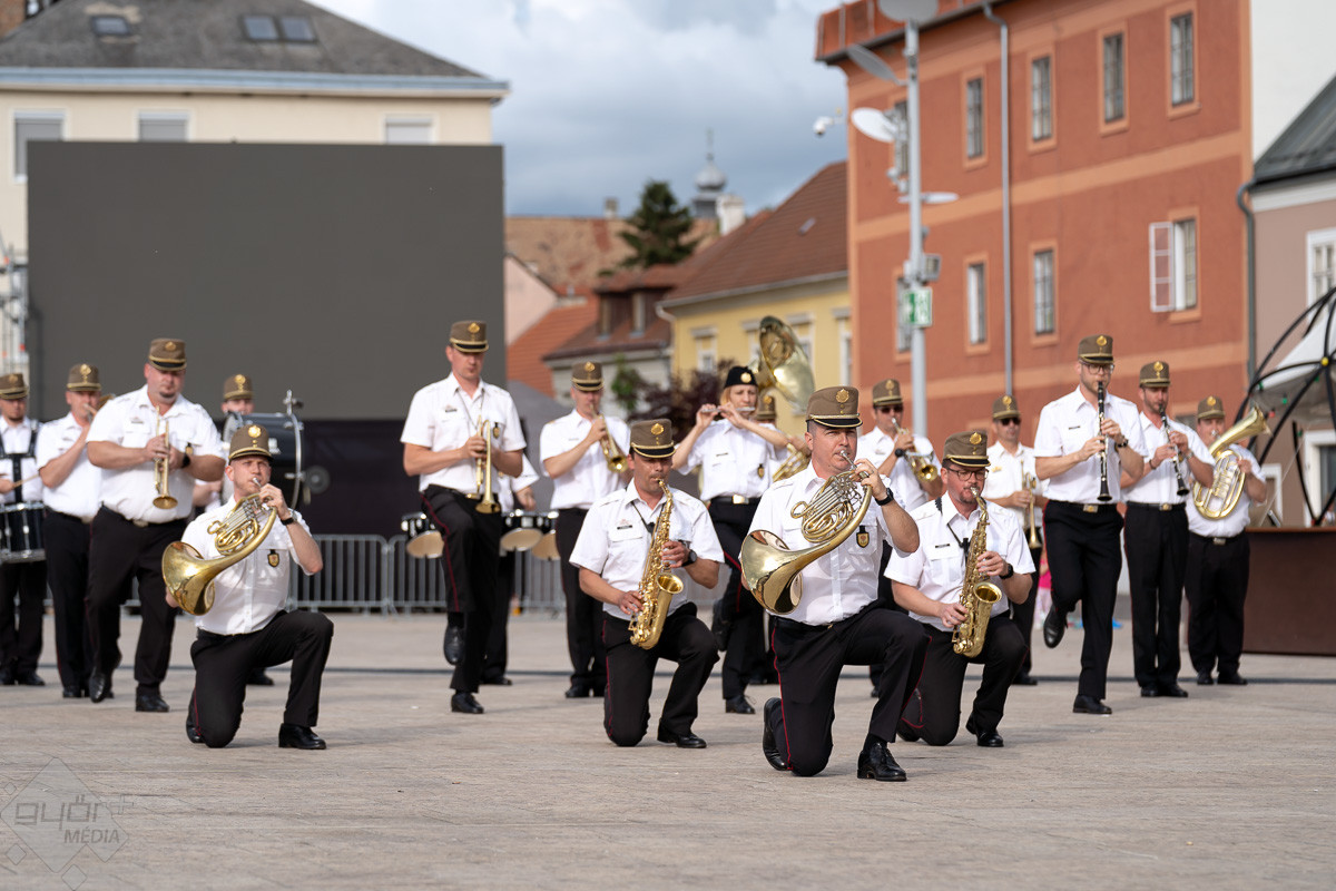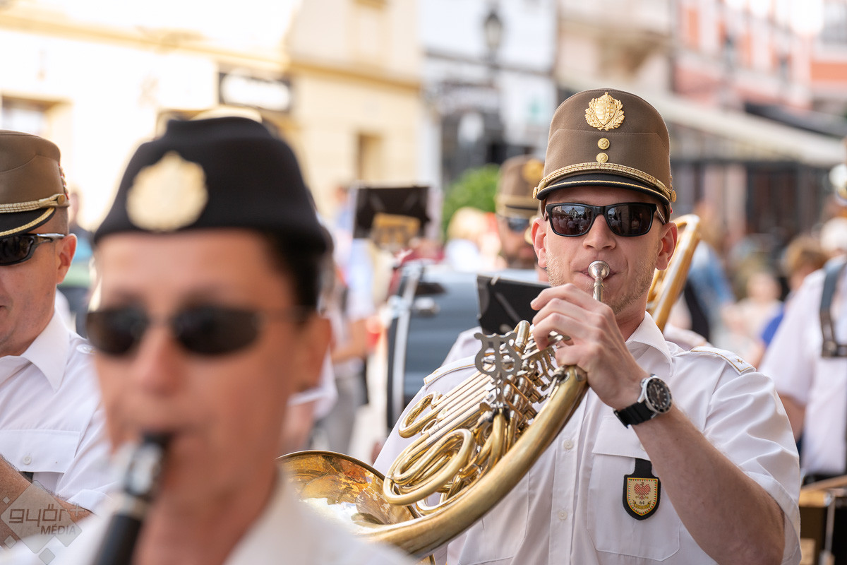 Rézfúvósok muzsikája töltötte be pénteken a belvárost, ma rendezik ugyanis I. Győri Regionális Katonazenekari Fesztivált.