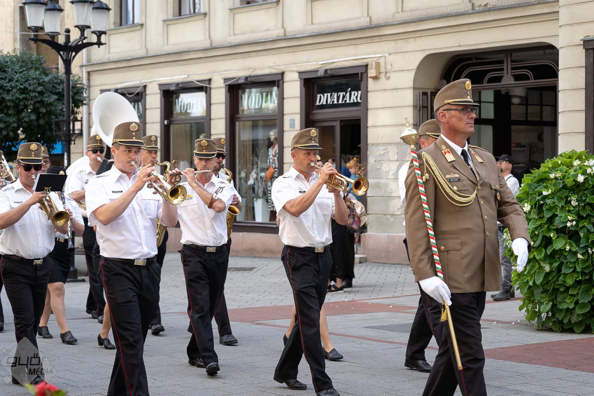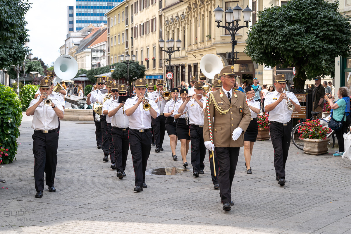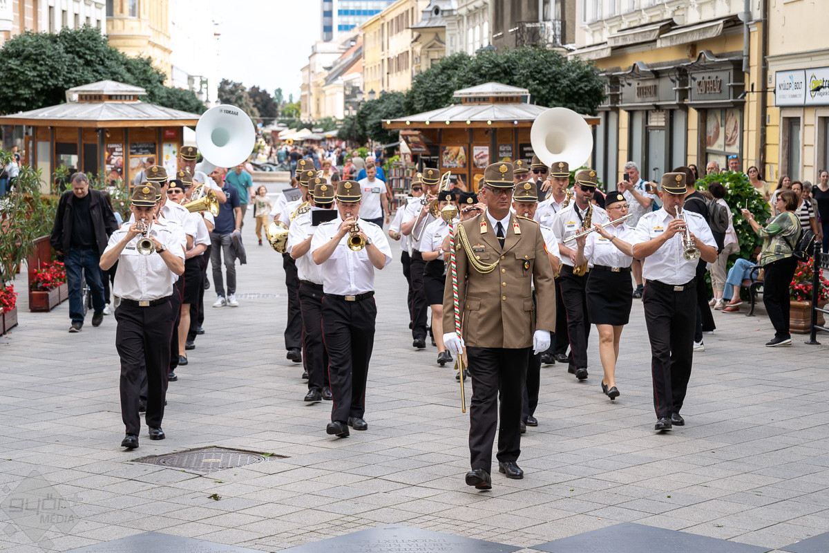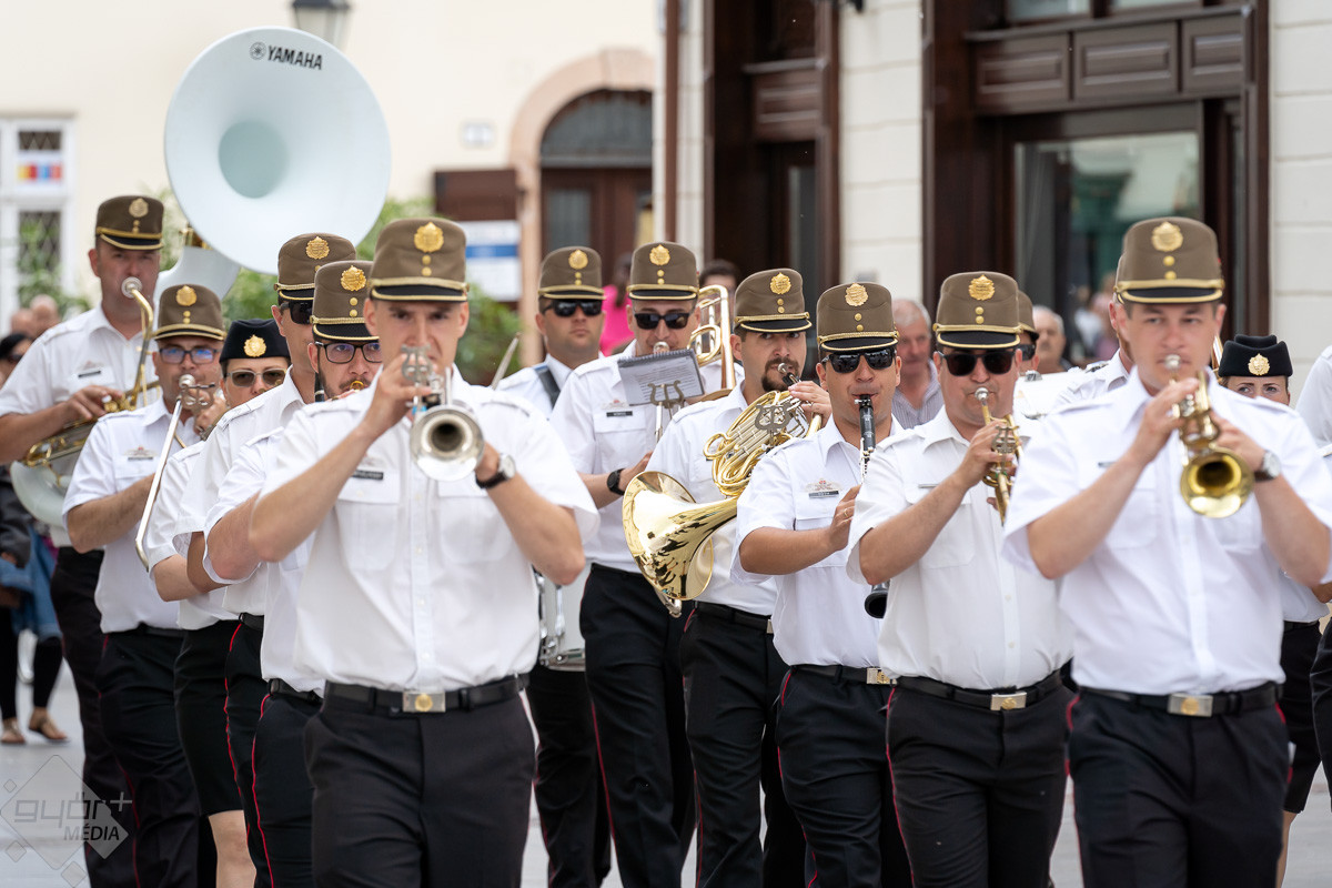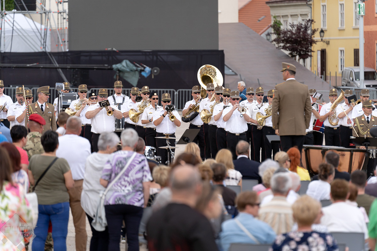 Rézfúvósok muzsikája töltötte be pénteken a belvárost, ma rendezik ugyanis I. Győri Regionális Katonazenekari Fesztivált.