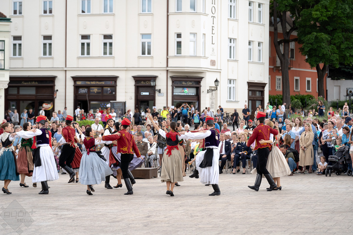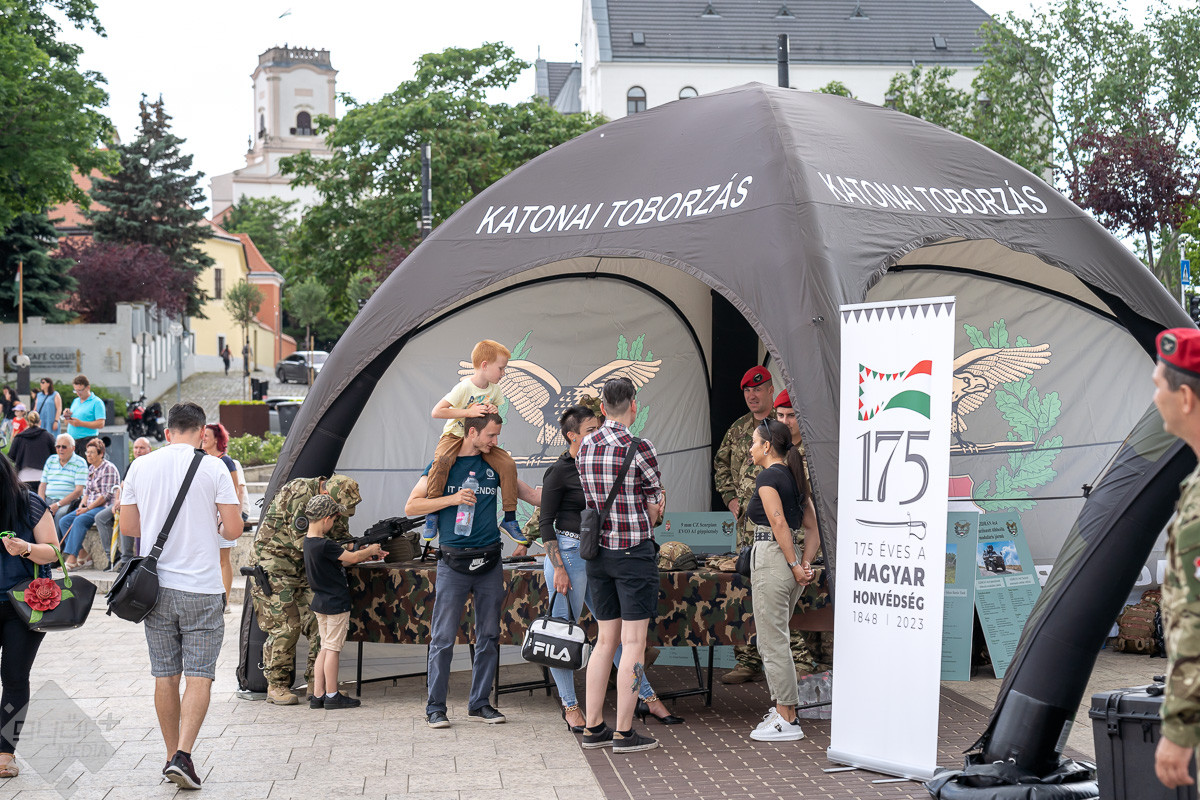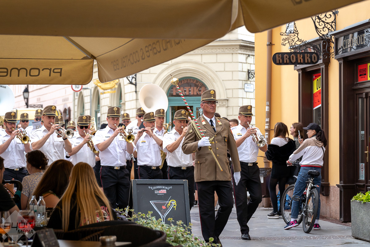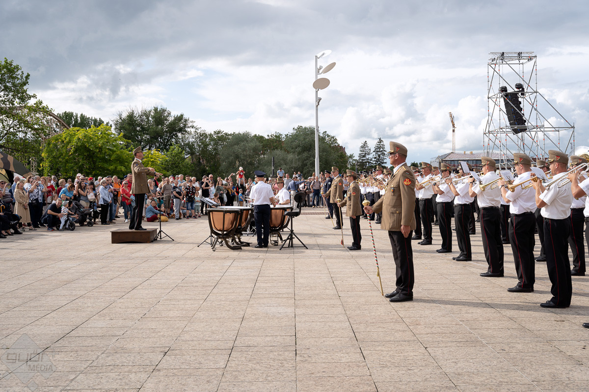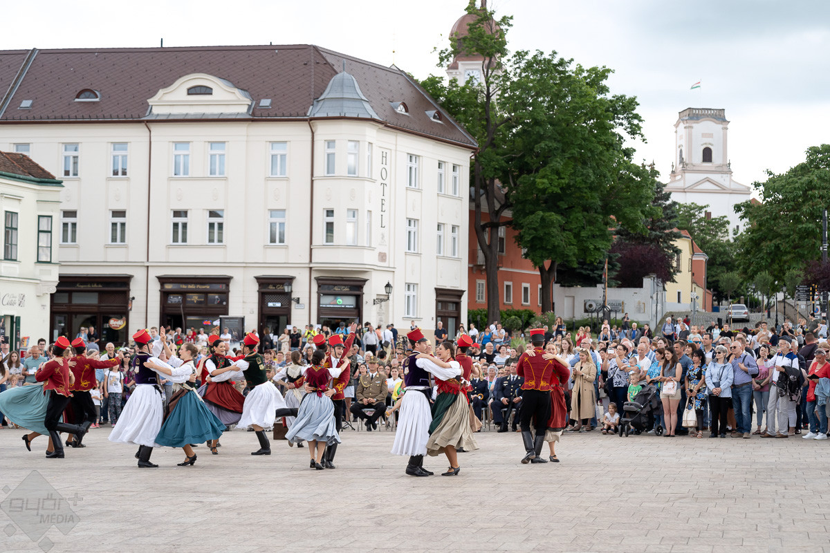 Rézfúvósok muzsikája töltötte be pénteken a belvárost, ma rendezik ugyanis I. Győri Regionális Katonazenekari Fesztivált.
