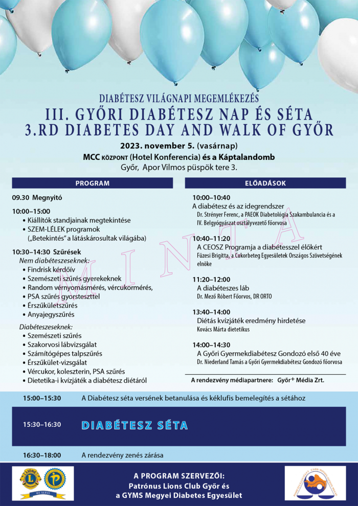 Harmadik alkalommal tartanak Diabétesz Világnapi sétát és megemlékezést Győrben. A programot ingyenes szűrések és előadások is színesítik.