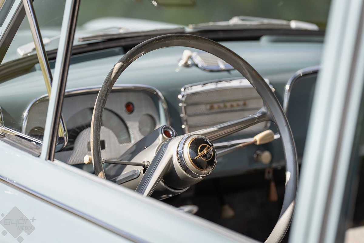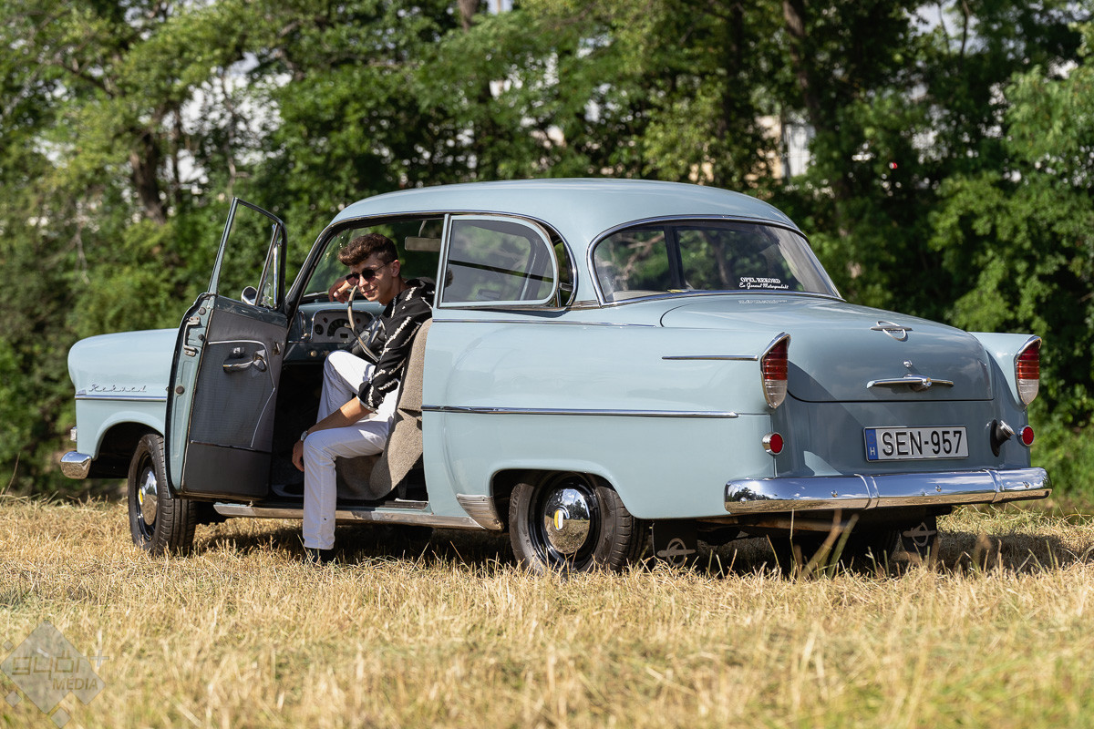 „Ami nekem van, azt 1953-1957-ig gyártották, szóval egy utolsó évjáratos Olympia Rekordról van szó. Tulajdonképpen az Olympia kivezetéséből és a Rekord bevezetéséből született meg: előbbi alkatrészeivel, utóbbi alvázára épült. Volt belőle sedan verzió, ami nekem is van, volt a caravan és a tolós-vászontetős kivitel. 1500-ös motorral szerelt, 3+1-es sebességes, ’57-ben már szinkronizált váltóval, előtte még dupla kuplunggal látták el őket. Ha nagyon őszinte akarok lenni, akkor ez a kocsi egy nagyon szerethető, de nagyon szerelhetetlen járgány: hatalmas a motortér, de benne tulajdonképpen minden kicsi, összenyomott, szóval nem egyszerű.”