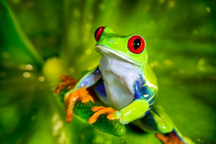 A cikkünk illusztrációja szerepel az első adásban, természetesen egy makrófotó, amin egy dél-amerikai piros szemű makibéka látható.