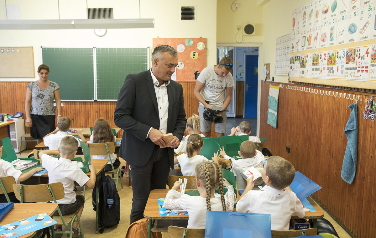 „Tudom, hogy milyen először beülni az iskolapadba, bár ez már elég régen volt. Abban biztos vagyok, hogy nagy izgalommal vártátok ezt a mai napot. Az önkormányzatban mindig igyekszünk, hogy nektek elsősöknek kis füzetcsomagot tudjunk összeállítani, ami nagy segítség lesz az első hónapokban. Ígérem, sok érdekes és szép dolgot találtok benne” – szólt az elsősökhöz a városvezető.
