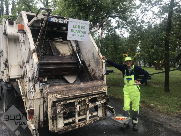 “A Győr+ Hetilapból hallottam a lehetőségről, hoztunk zöldhulladékot, régi porszívót, régi mérleget. Nekem sokkal jobb ez a helyszín, mint a másik volt, mert ez közelebb van, a kisunokámmal jöttem és az unokámnak az osztálytársával” – mondta el Schreiber Sándor. “Azért jöttünk, hogy kidobjuk a sok hulladékot. Elvittem a nyesedéket és az elektronikai eszközöket, jó, hogy el lehet hozni, mert legalább nem marad otthon” – tette hozzá a focirajongó kisunokat Schreiber Noel.