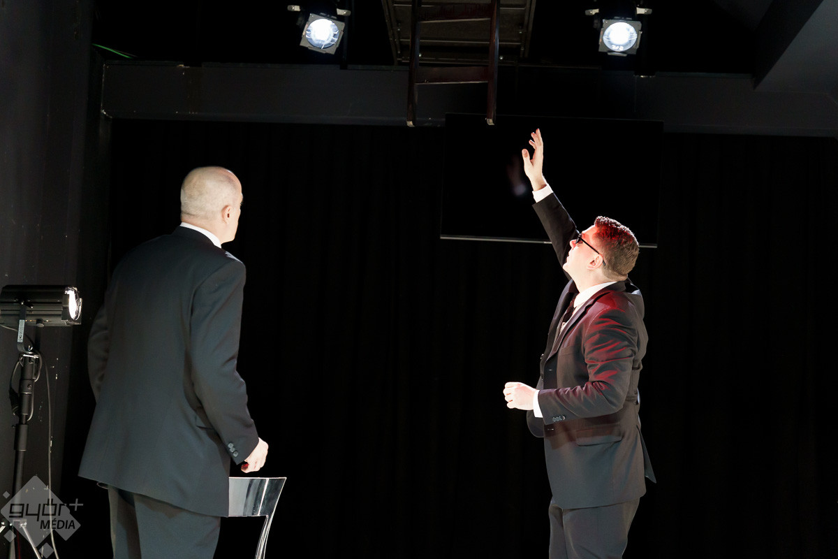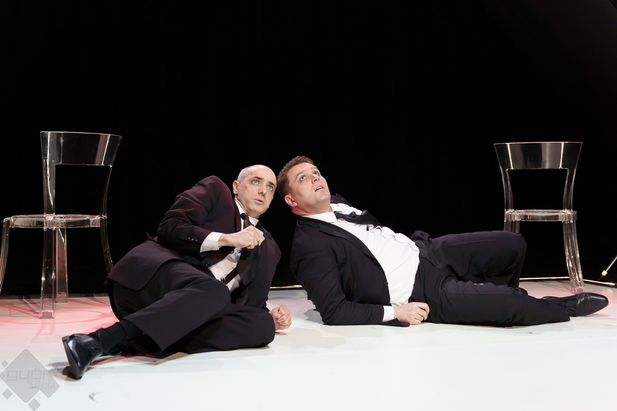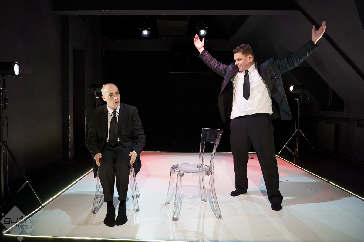 A színházszerető közönség számára mindig különleges utazás, amikor a Padlásszínház intim környezetébe invitálja a teátrum az érdeklődőket. De valljuk be ez nem csak a nézőknek egyedi élmény, a művész számára is kuriózum, hiszen a tér nyújtotta adottságoknak hála akár egy filmes produkció főszereplőjeként bontakoztathatja ki tehetségét az előadó. A nüansznyin mimikák, a halk lélegzetvételek is hatással vannak a közönségre, kiváltképp ha a lengyel drámaíró Sławomir Mrożek művét viszi színre a társulat két kulcsfigurája, Fejszés Attila és Sárközi József.