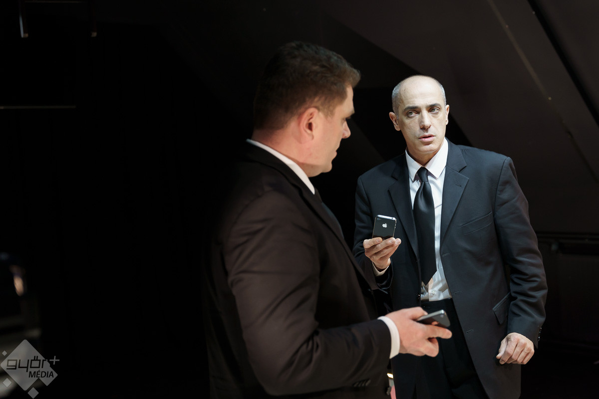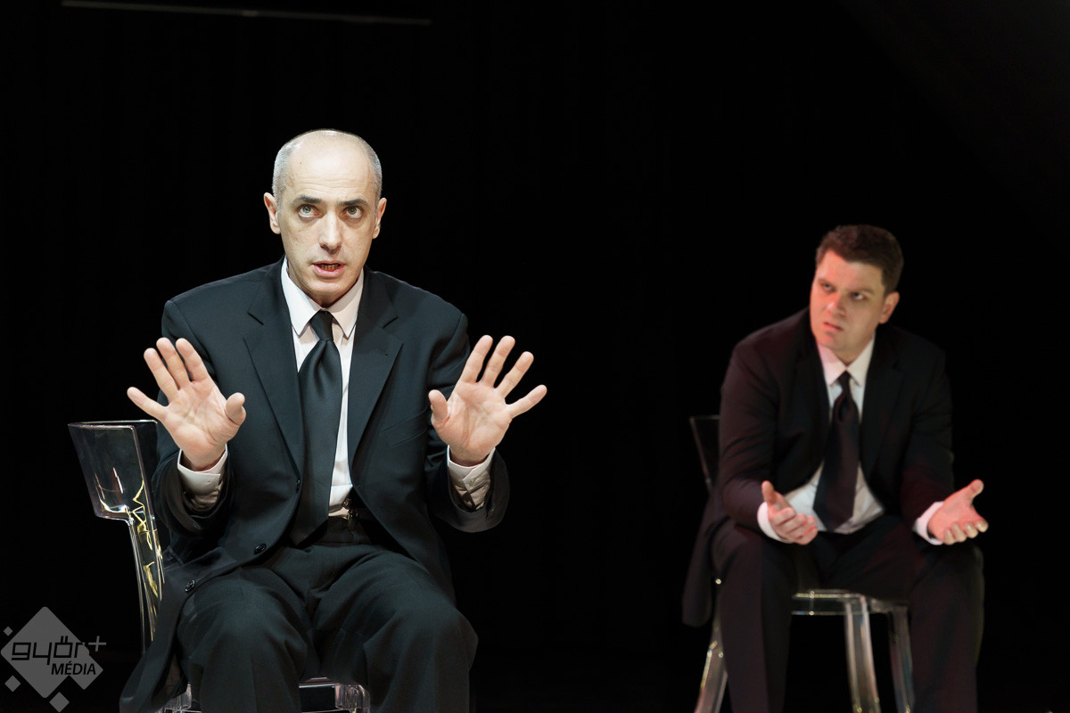 „A történet kezdetén a két férfinak fogalma sincs arról, hogy hova kerültek, nem ismerik egymást, de szembetűnő, hogy ugyanolyan ruhában vannak, még a telefonjuk is egyforma, tulajdonképpen bármelyikünk lehetne. Hogy hogyan jutnak ki, mi vezet odáig? Jó kérdés. Mikor Mrożek írta a történetet egyfajta elnyomás befolyásolta a társadalmat, az ebből való kitörés, illetve annak a lehetősége, annak a sikere vagy sikertelensége az, amin nekünk keresztül kell mennünk” – mesélt a darabról Fejszés Attila.
