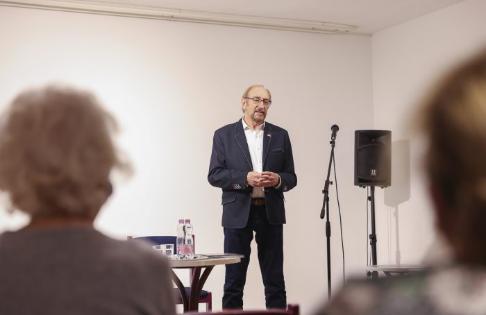 Ferenczi Tamás szerint a 2011-es népszámláláson mintegy kétezren vallották magukat német nemzetiséginek Győrben, a valós létszám azonban 6–8 ezerre tehető. A múltról szólva az előadó kiemelte: a történelem viharával meg jó szelével Szent István bajor Gizellája óta érkeznek hozzánk nyugatiak, beszélt Pálffy és Schwarzenberg tetteiről, a vaskakas legendájáról, a Győr keresztek jelentőségéről, és arról, hogy a városban nem is olyan régen még éppoly természetes volt a német szó, a német újság és német színház, mint a magyar.