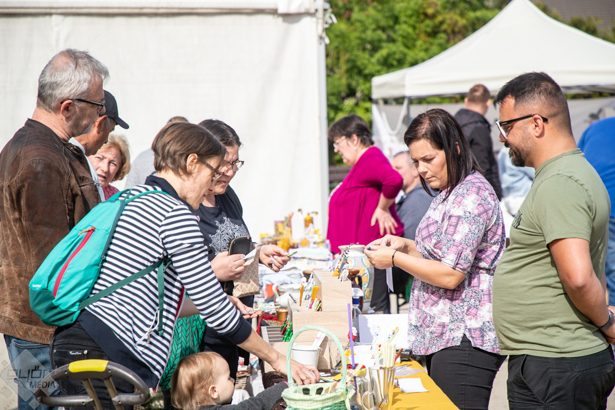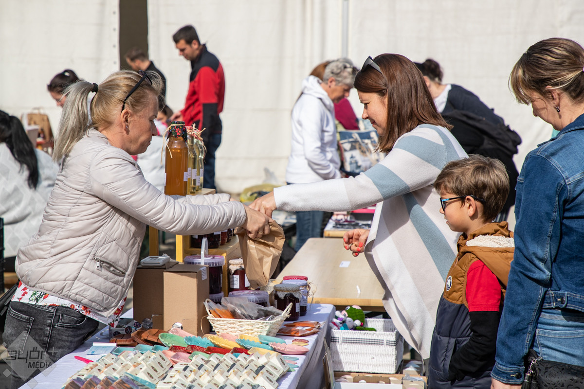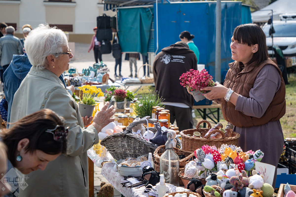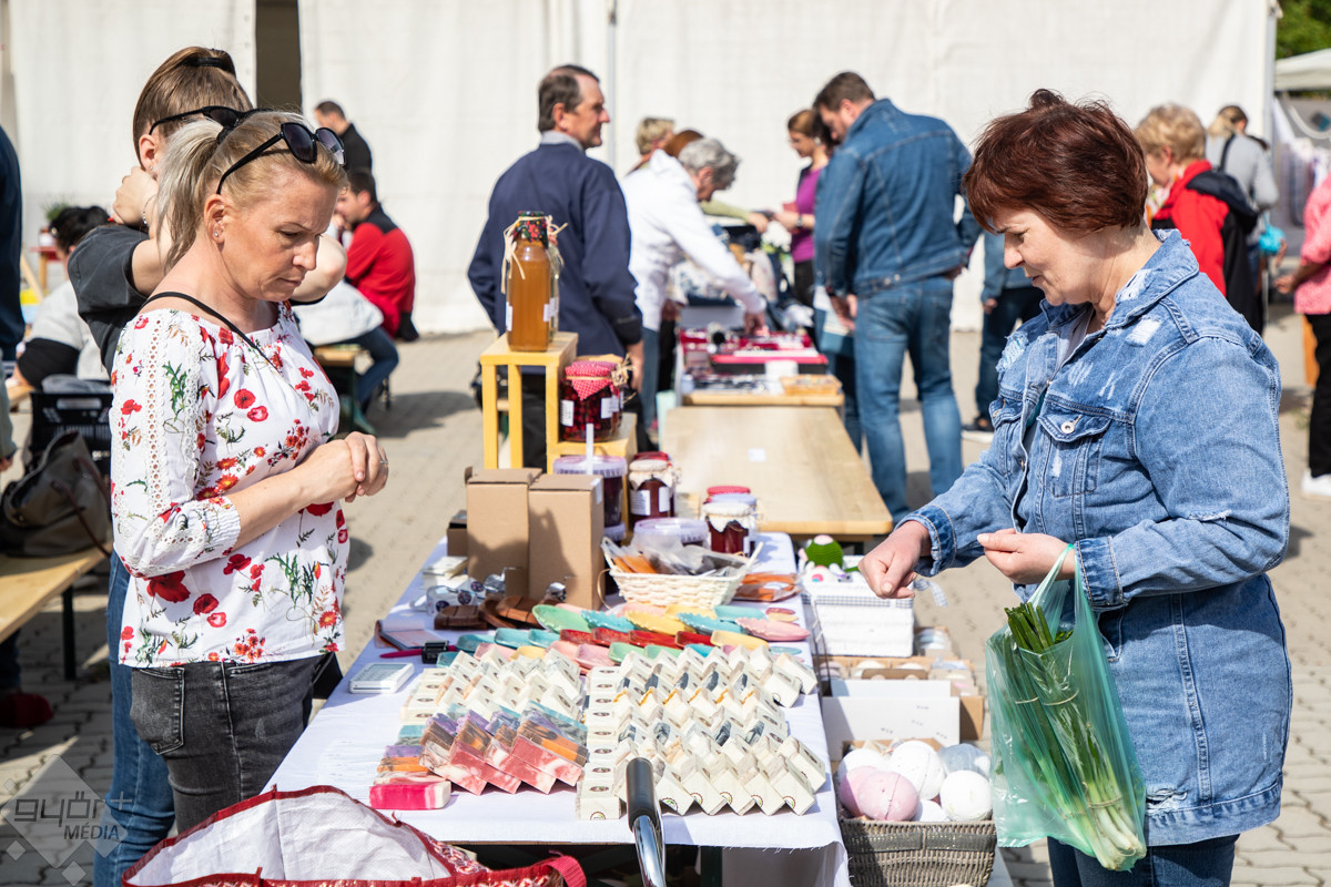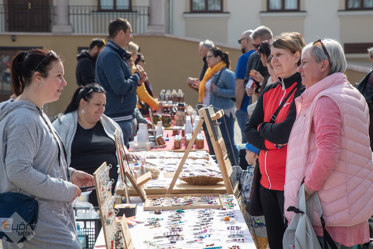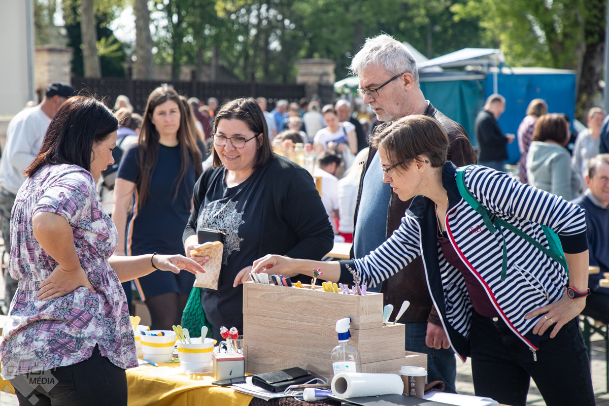 A kellemes tavaszi időben nem csupán nézelődni, vásárolni is érdemes volt a szebbnél szebb standok között a Bezerédj-kastély kertjében, ahol a kézművesek és a termelők portékáik legjavát kínálták a ménfőcsanakiaknak és a környékről idelátogatóknak.