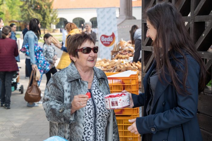 Dr. Laczkovits-Takács Tímea, a körzet önkormányzati képviselője a piacra kilátogató anyákat, nagymamákat egy kis meglepetéssel várta.