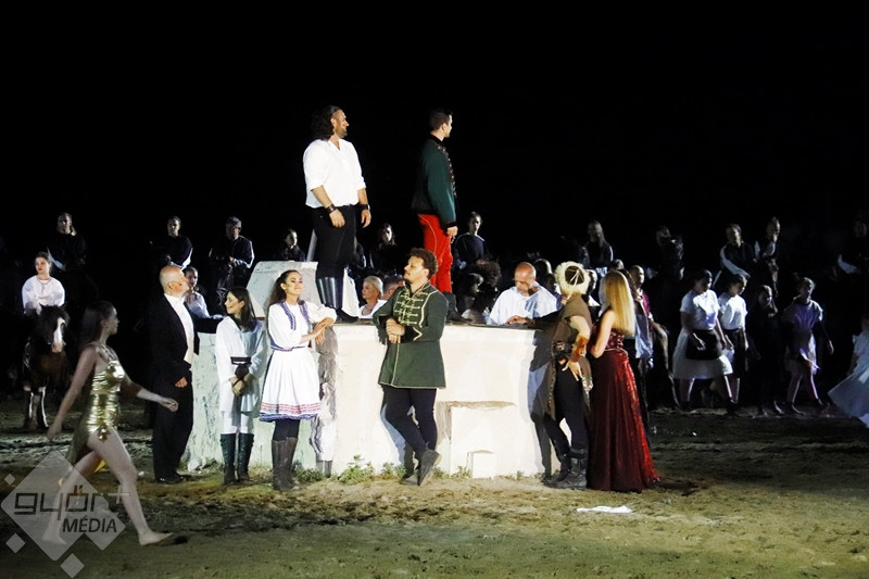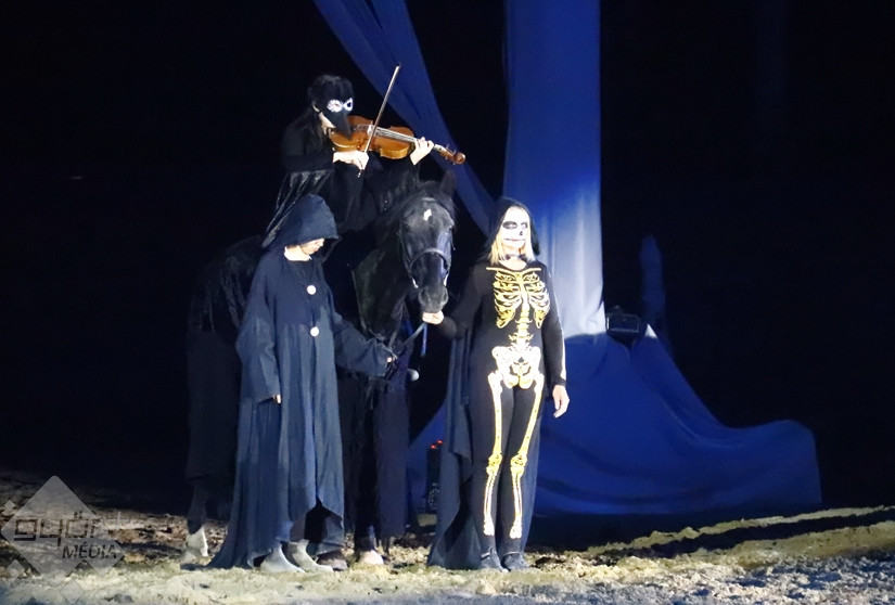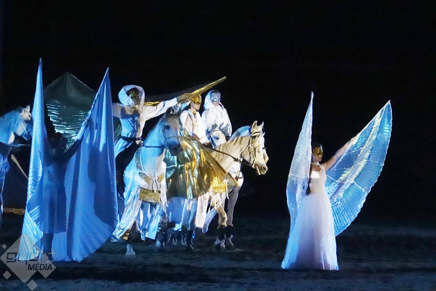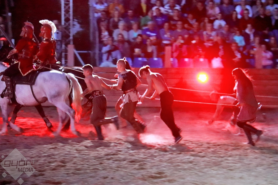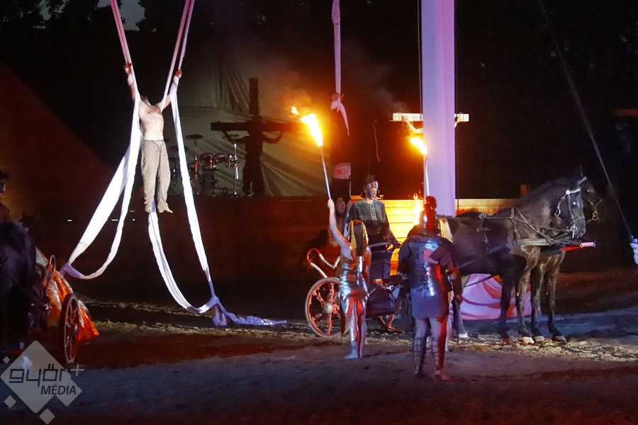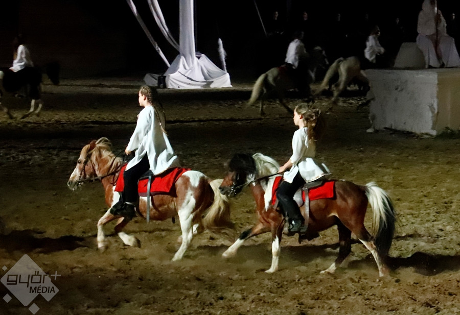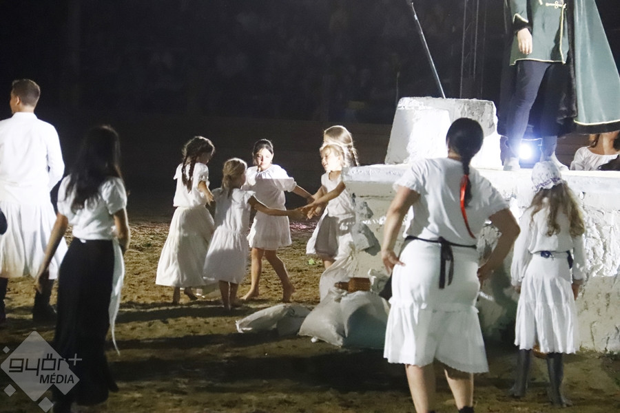 Kedves Olvasónk, Beledi Márta sem hagyta ki a fantasztikus produkciót, fotói mellett, a darab érdekességéről is írt a Győr+ Médiának. “Az ókortól kezdődő történet a római császárság kegyetlen világán, a keresztes háborúkon át kalauzol tovább a magyar vidék mindennapi életébe, a háború kitöréséhez. A halál nem tudja legyőzni a jót, aki egy kislány személyében testesül meg a történetben. Szárnyas angyalokat hív segítségül, hogy legyőzze a halált. A darab megálmodója a Győri Lovas Színház vezetője, Tóth Szilárd, zeneszerzője Derzsi György“ – írta Márta, akinek ezúton is köszönjük képes beszámolóját.