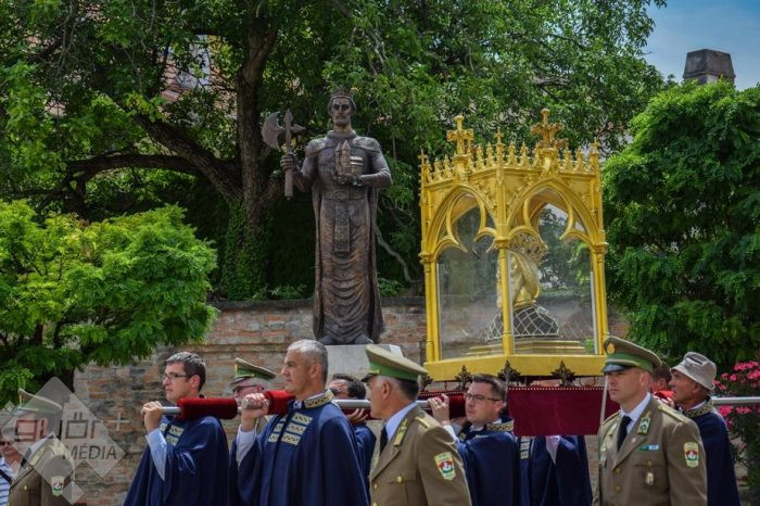 Ami nekünk, győrieknek fontos, hogy a Győri Egyházmegyei Kincstár őrzi a Szent László-hermát, a város szimbólumát. Az ereklye jelenleg a Szent László Látogató Központban (Káptalandomb 13.) tekinthető meg. A koponya-ereklyéjét egy gótikus pántokkal átfogott tokban, aranyozott ezüst fejében őrzik. 1192-ben, Szent László szentté avatásakor a nagyváradi sírból kiemelték a csontereklyéket, s a szent király koponyáját előbb egy egyszerű ereklyetartóba, majd a hermába helyezték el, és a nagyváradi székesegyházban őrizték. Az eredeti herma 1405-ben egy tűzvészben megsemmisült, az eredetileg négyágú gótikus koronát a XVII. század fordulóján alakították át barokk tízágúra. A Győrben látható ereklyetartó-másolat 1400-1425 között készült. Az Európa legszebb hermájának tartott ötvös remekmű az egyetlen hiteles árpád-házi királyábrázolásunk. A szent ereklyét Náprági Demeter erdélyi püspök hozta Győrbe, amikor győri főpásztorrá nevezték ki 1607-ben. Minden év június 27-én díszközgyűléssel, díjátadással, szentmisével és ünnepi körmenettel emlékezünk a szent királyra, valamint a családokat a Szent László napok rendezvénysorozat is várja. Sajnos ez utóbbi idén elmaradt.
