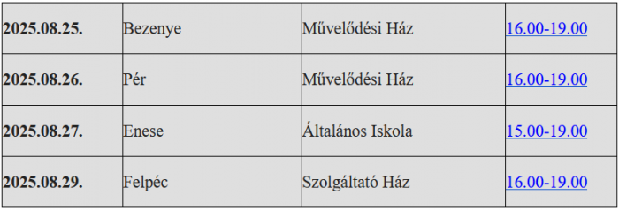 A megadott programon kívül az alábbi nyitva tartásban várják a Regionális Vérellátó Központban a vért adni szándékozókat (Győr, Magyar u. 8.):