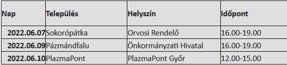 Az alábbi helyszíneken és időpontokban lesznek véradások jövő héten: