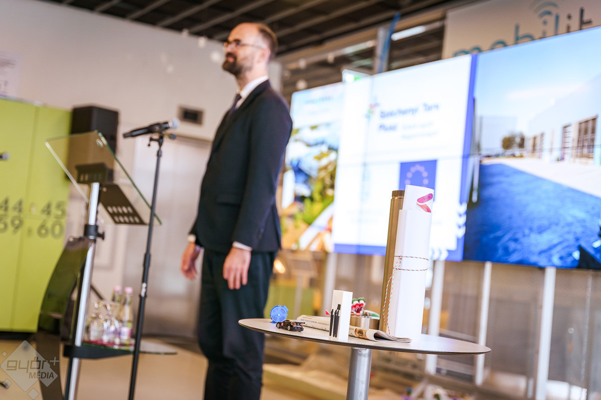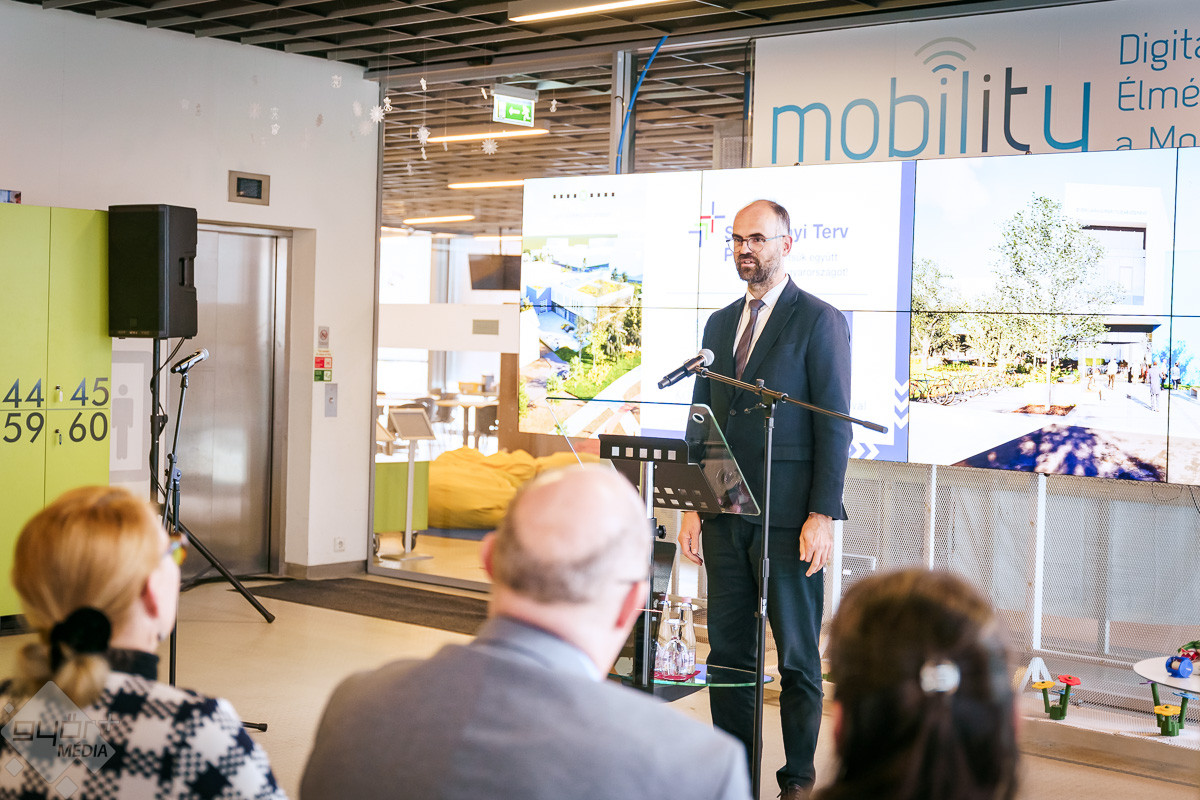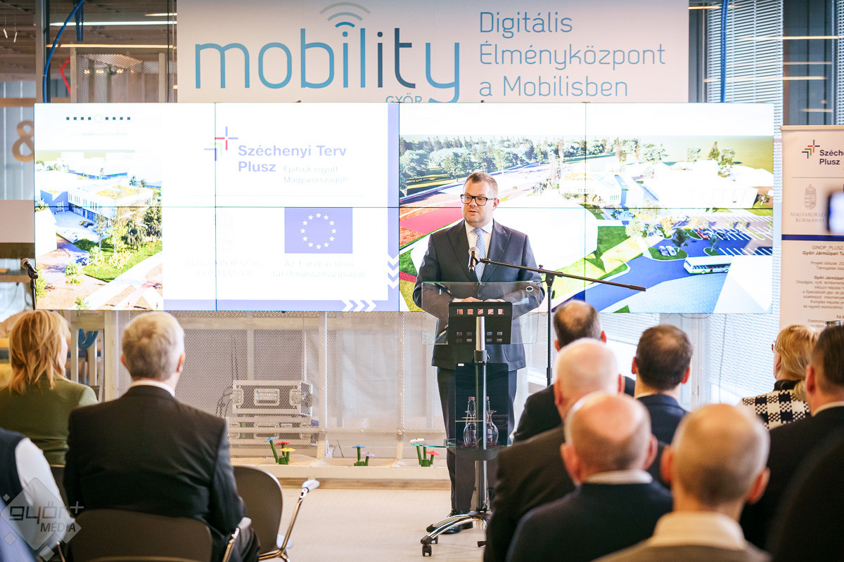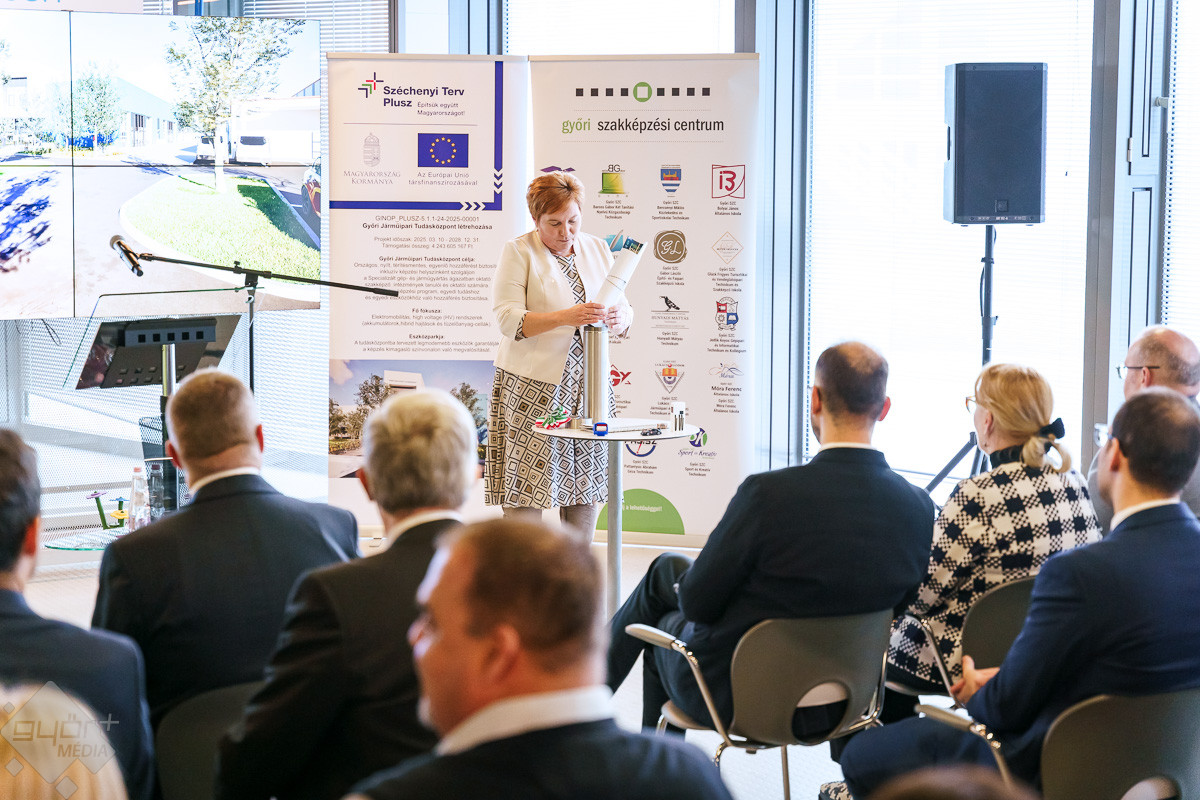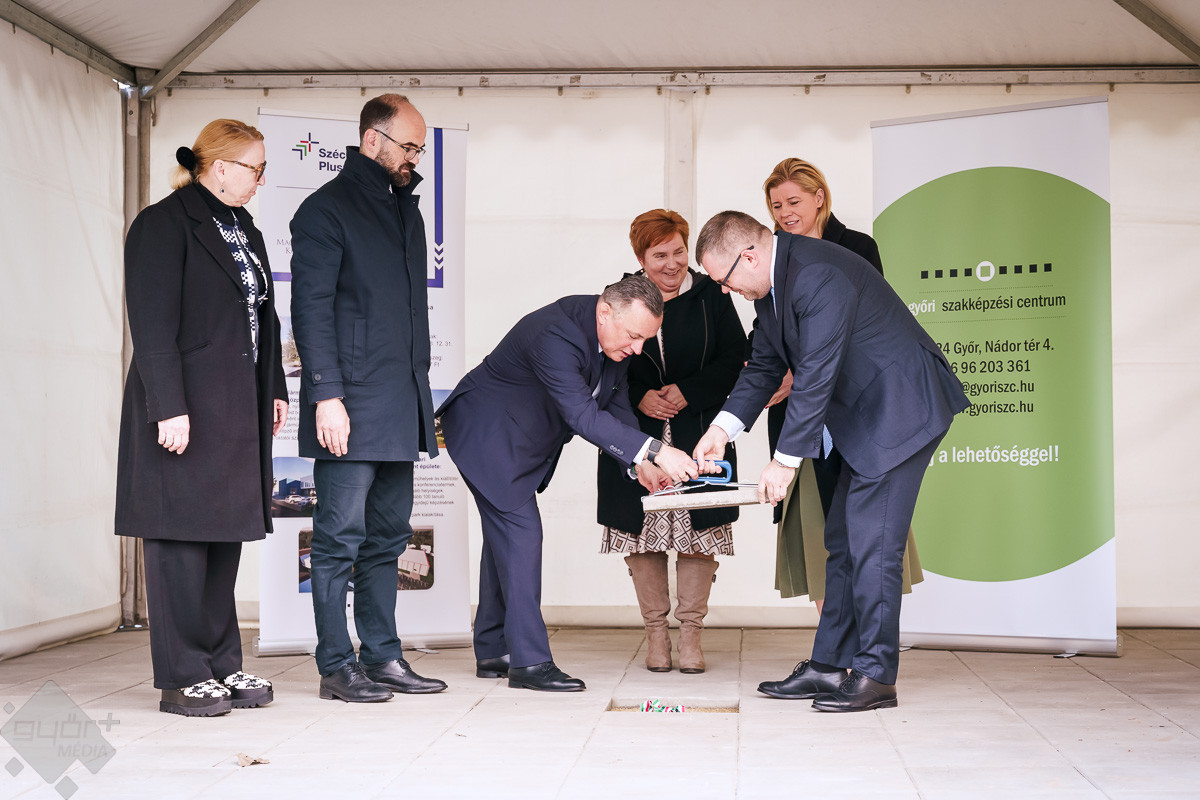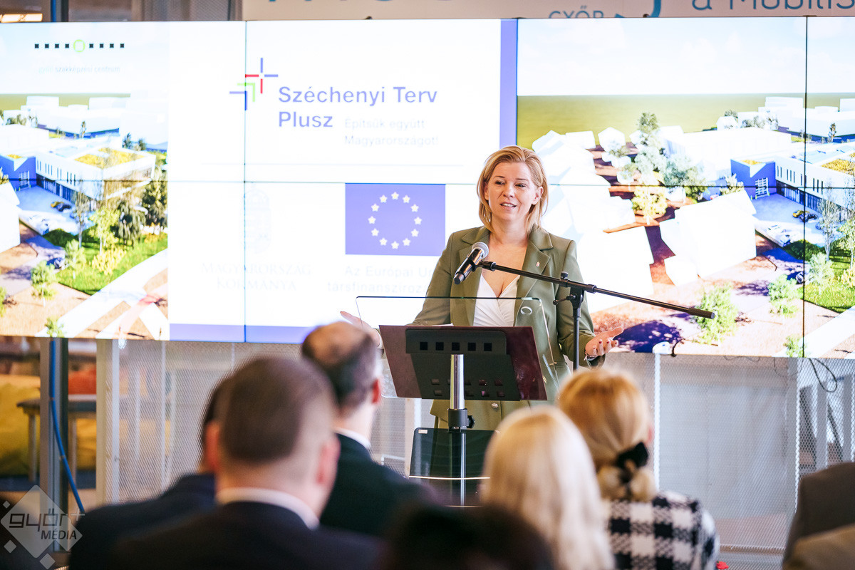 A több, mint 4,2 milliárd forint állami támogatásból megvalósuló járműipari tudásközpont jelentőségét az építési minisztérium helyettes államtitkára is méltatta, míg a szakképzési centrum kancellárja a projekt állásáról számolt be. „Megvan a terület, itt a Mobilis mellett, hálásak vagyunk az egyetemnek, hogy ezt rendelkezésünkre bocsátotta, a tervezés is megtörtént, jóváhagyott építési engedélyes tervünk van már, de ma újabb mérföldkőhöz érkeztünk, elhelyezzük az időkapszulát a leendő központ területén, ami a jövőnek és a jövőről szól, a győri szakképzés jövőjéről” – hangsúlyozta Gede Eszter, a Győri Szakképzési Centrum kancellárja. Az időkapszulába egy szerdai napilap, egy kamarai tájékoztató a szakképzési lehetőségekről, egy Audi kisautó, valamint egy 3D-s nyomtatással készült elektromos motor és töltő került, a kapszulát pedig a megvalósuló tudásközpont területén helyezték a földbe, az ünnepélyes rendezvény szónokai.