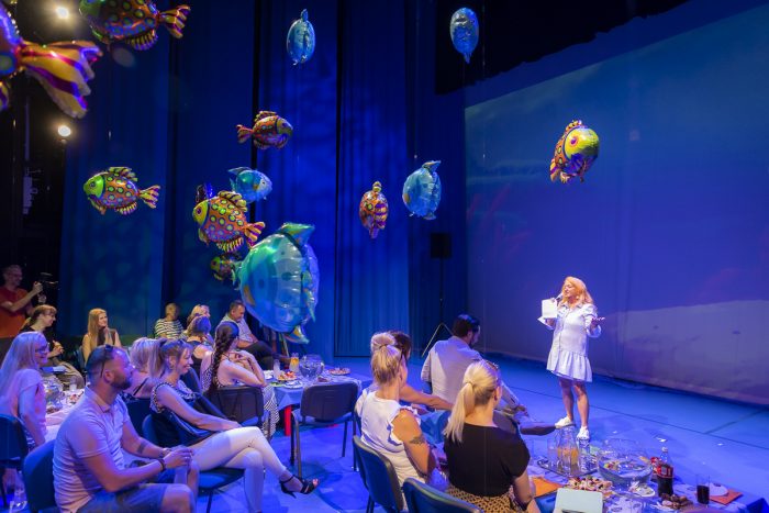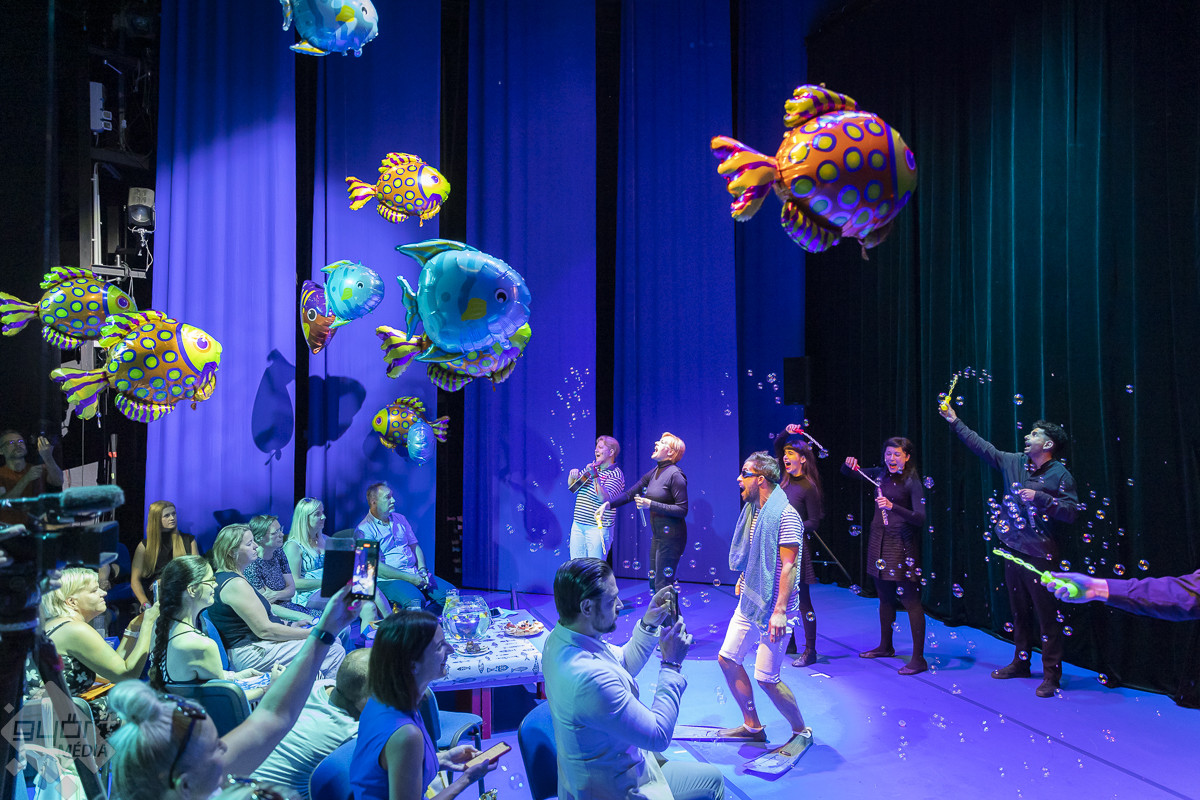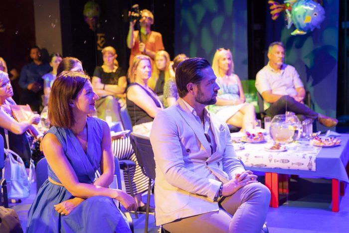 „Azoknak szól a köszönet, akik minden évben támogatnak bennünket, nem titok, hogy a legnagyobb patronálást Győr város önkormányzatától kapjuk, de hálásak vagyunk azoknak a vállalkozásoknak is, akik hatalmas segítséget nyújtanak annak érdekében, hogy örömteli pillanatokat okozhassunk a gyerekeknek. Összefog a város ezért a fesztiválért, ami nagyon megható” – mondta Kocsis Rozi, majd átadta a szót dr. Dézsi Csaba Andrásnak, aki elsőként a hatalmas akváriummá avanzsált színházteremről beszélt elismerően, de természetesen a polgármester méltatta a kakasos együttest is.
