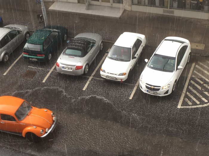 16 óra után pár perccel Győrbe, a Belvárosba is megérkezett a jégeső. Mindenki próbáljon meg fedél alá húzódni.