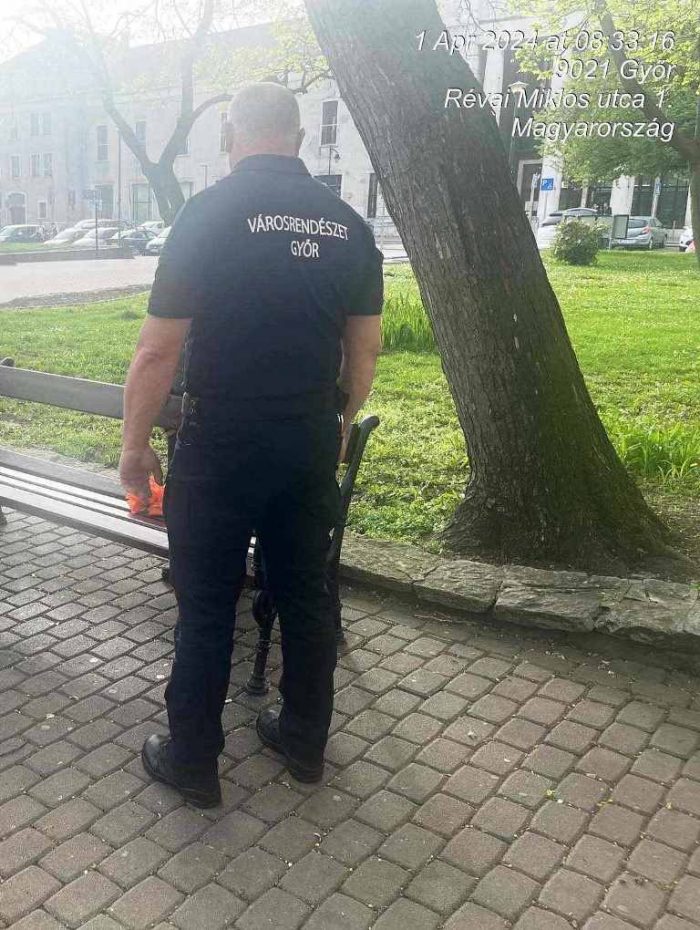 „Egy idősebb hölgy akkor már próbálta lebeszélni a további tépkedésről a középkorú nőt, de eléggé hajthatatlannak tűnt. Próbáltunk vele szót érteni, de sajnos tényleg roppant zavartan viselkedett, elég furcsa magyarázatokat adott a tettére és látszott, hogy nincs tisztában azzal, milyen pusztítást végzett. A helyszínt el akarta hagyni, de felvilágosítottuk, hogy ezt a tette fényében nem teheti meg, s már szóltunk a Győr-Szol ügyeletének és a rendőrségnek is. Míg ők megérkeztek, mi visszatartottuk a nőt és a helyszínt biztosítottuk.” – mondták el a Győr+ Média érdeklődésére az akkor szolgálatban lévő városrendészek.