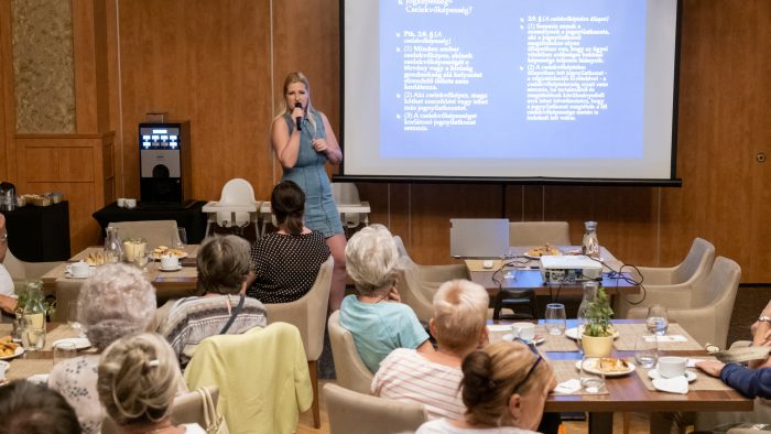 A Rába Hotel különterme ezúttal is megtelt, nagyon sokan eljöttek, hogy első kézből kaphassanak hiteles és megbízható információkat. Az időskori demencia és Alzheimer-kór mára sajnos már szinte minden családot érint. Azért volt jogász a mostani vendég, mert az elmúlt alkalmakkor többen érdeklődtek róla, mik a pontos feltételei a betegségben szenvedő, szellemileg és testileg is hanyatló szeretteik gondnokság alá helyezésének.