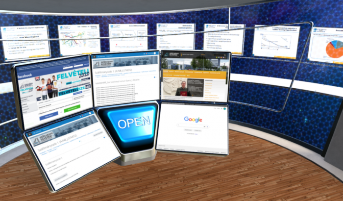 A több évre visszanyúló fejlesztések lehetővé teszik az e-learning rendszerben elhelyezett tartalmak zökkenőmentes megjelenítését az egyetem oktatási virtuálisvalóság-tereiben is.