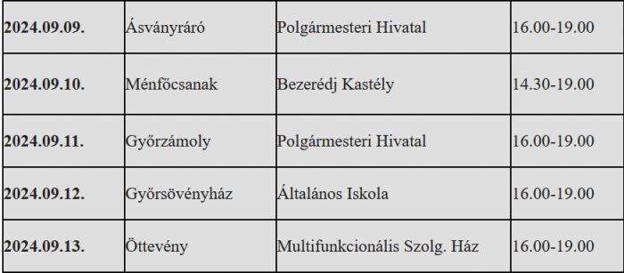 A megadott programon kívül az alábbi nyitva tartásban várjuk a Regionális Vérellátó Központban a vért adni szándékozókat (Győr, Magyar u. 8.):