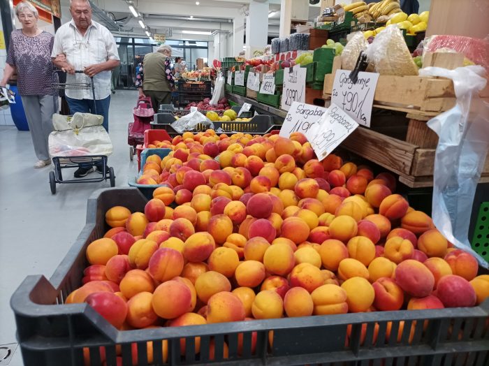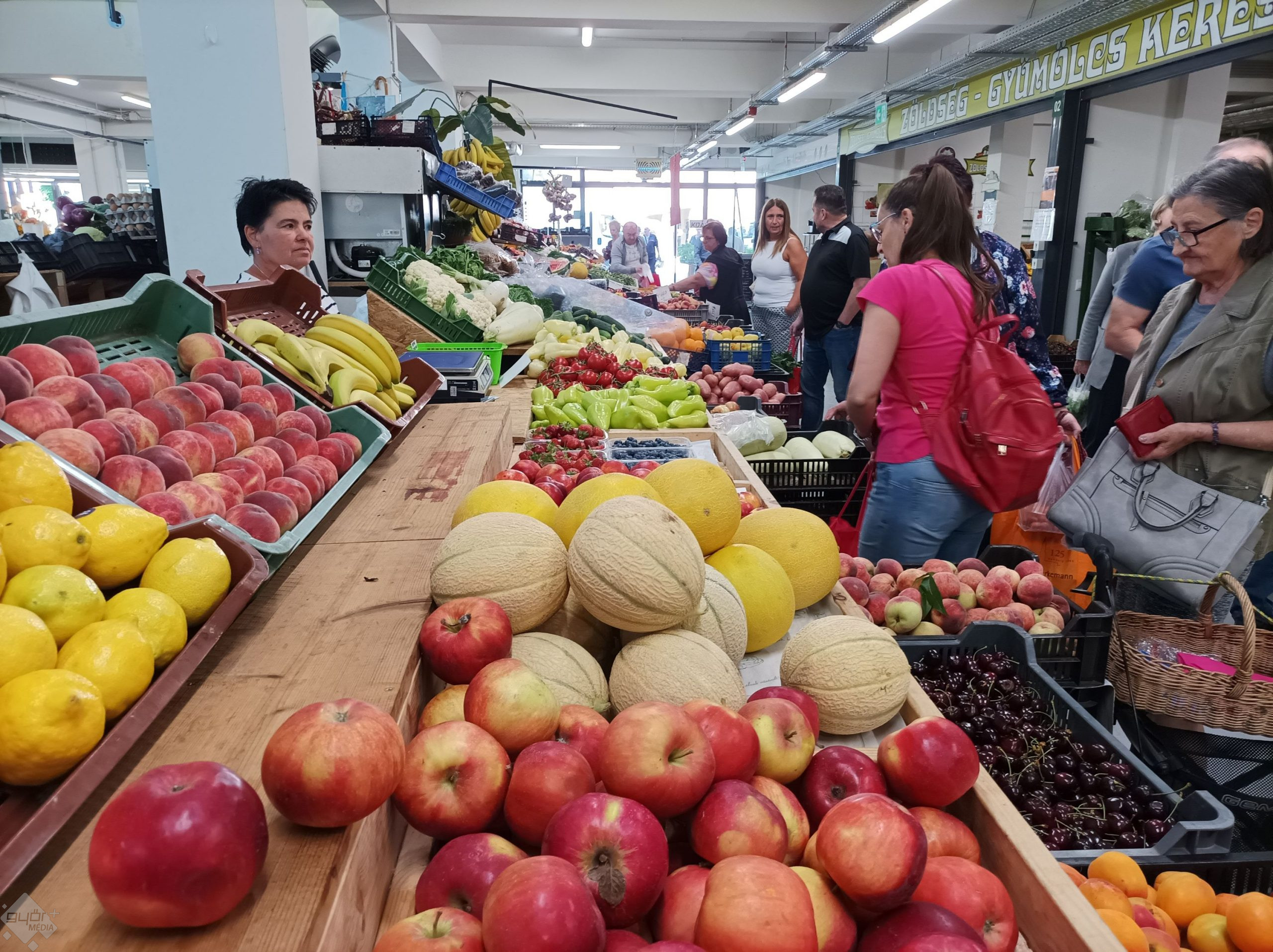 Akár a telt ház táblát is ki lehetett volna tenni pénteken a győri Vásárcsarnokban. A péntek mindig erős a piacon, de most különösen sokan vásároltak, elsősorban friss, hazai gyümölcsöket.