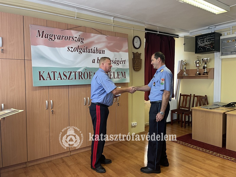 Magyarország belügyminisztere a katasztrófavédelem hivatásos állományában töltött tíz éves szolgálata és eredményes munkája elismeréséül szolgálati jelet adományozott Gaál László tűzoltó századosnak, a Győri Katasztrófavédelmi Kirendeltség vezetőjének és Karácsony Attila tűzoltó őrnagynak, az Informatikai Osztály kiemelt főelőadójának.