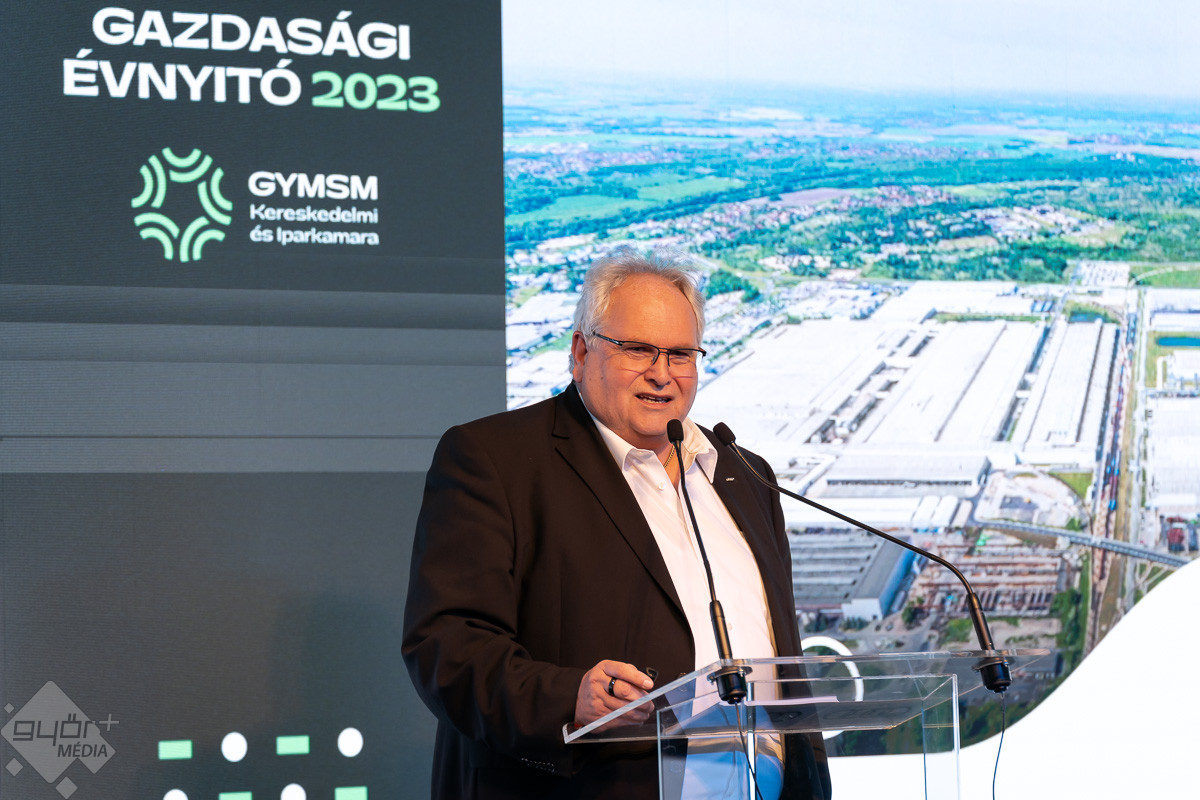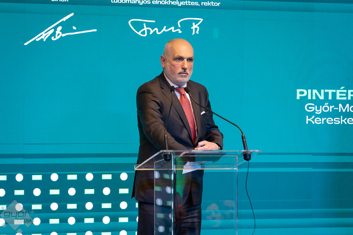 ,,Az elmúlt 2-3 évben a vállalkozásokat számos kihívás érte. Ehhez szeretnénk kapaszkodókat adni a megyénkben bejegyzett 36 ezer vállalkozásnak. A koronavírus-járvány átrendezte a világunkat. A nehézségeket tetézte a háború kitörése a szomszédunkban. Elszabadultak az energiaárak. Egészen megdöbbentő, hogy egyes árak 1000-1500 százalékkal emelkedtek. A kialakult helyzet inflációt eredményezett, aminek a velejárója a magas kamat. A mi feladatunk a tűzoltás, segítenünk kell a vállalkozásokat. Muszáj csökkenteni az őket terhelő adókat. Elindult a gyármentő program, s a vállalkozások öt százalékos kamatra kaphatnak hitelt. Továbbra is nagyon fontos a tudás és az oktatás, illetve hogy a területfejlesztés gazdasági fejlesztéssel is járjon” – mondta Pintér-Péntek Imre, a GYMSM KIK elnöke.