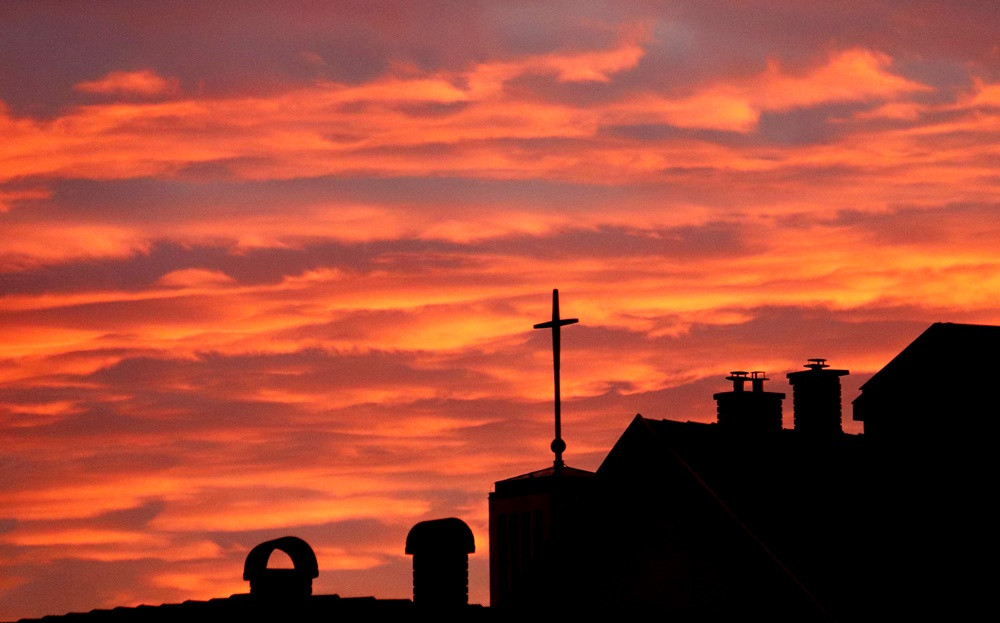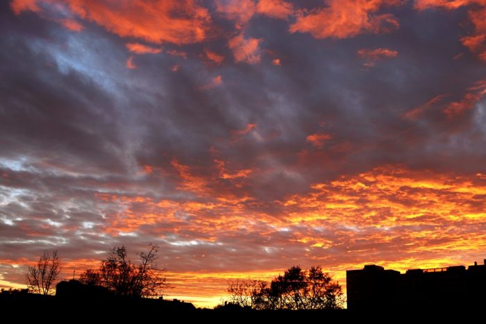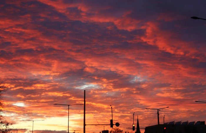 Vörös fényekben úszott az égbolt Győrben, a naptár szerint tél első naplementéjekor.