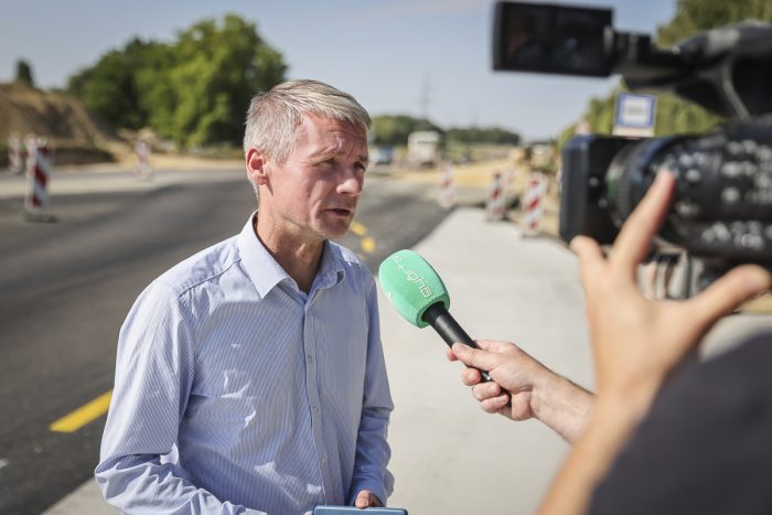 „Most már látványosan készül a Győr és Pápa közötti útszakasz, amit a ménfőcsanakiak és a gyirmótiak is testközelből megtapasztalhatnak, őket is komolyan érinti a fejlesztés, hiszen két turbó körforgalom is készül, ami megkönnyíti a két érintett városrészből a főútvonalra csatlakozást” – mondta Kara Ákos.