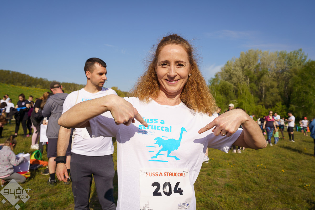 „Szerencsére rengeteg cég mellénk állt, így a futáshoz szükséges finomságok is biztosítottak, a rajtszámokat is egy támogatónk készítette, ahogy az egyedi befutóérmet is, de a számítógépes rendszer kiépítését is egy segítőnk vállalta. Újdonság volt idén, hogy a Generációk Háza egy rajpályázatot indított az eseménnyel kapcsolatban, 66 pályamű érkezett be, a zsűrizés megtörtént, minden résztvevő kap egy kis ajándékot, az eredményhirdetést szombaton tartjuk, természetesen ugyancsak a struccfutás helyszínén” – mondta meghatottan a futónagykövet balerina.