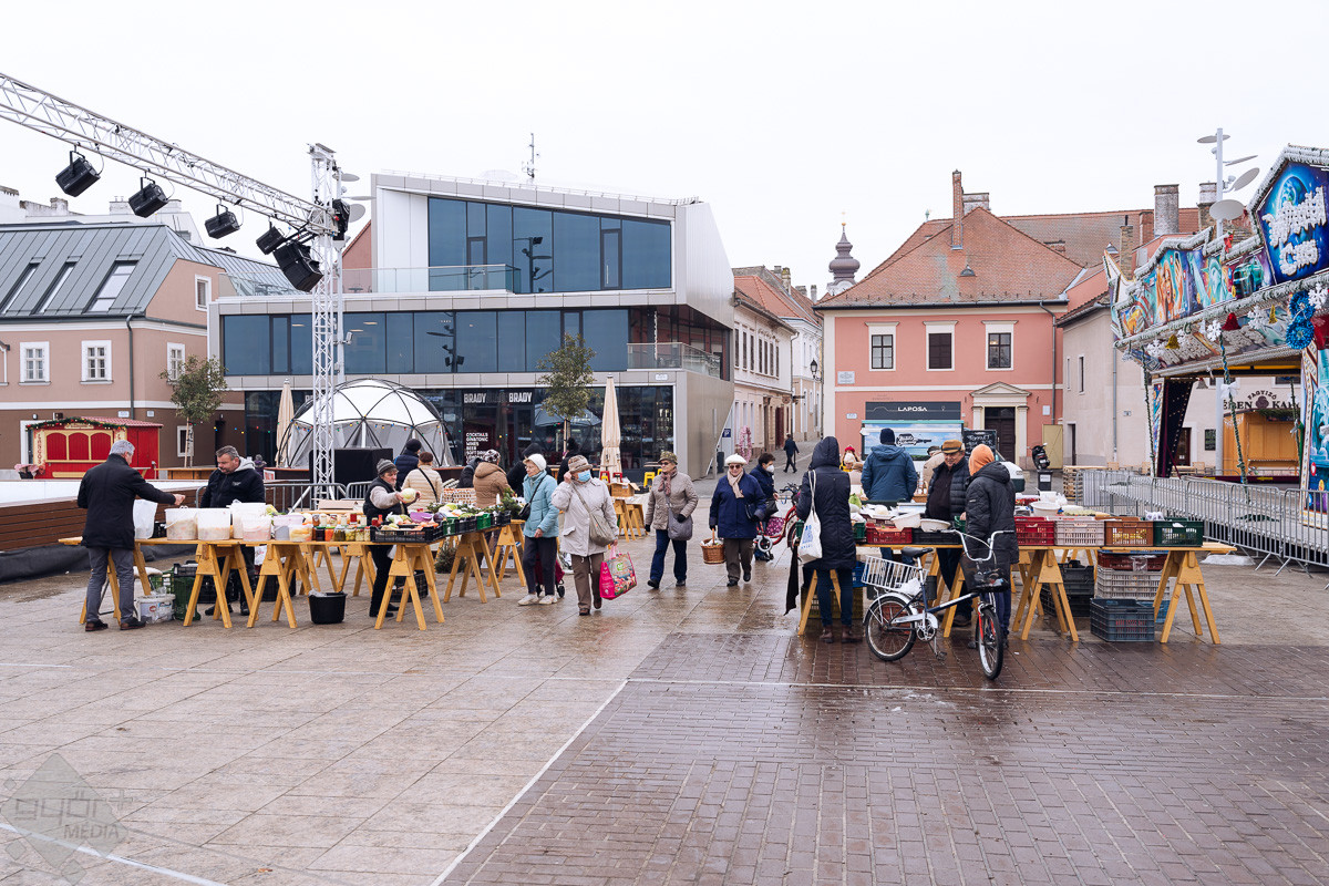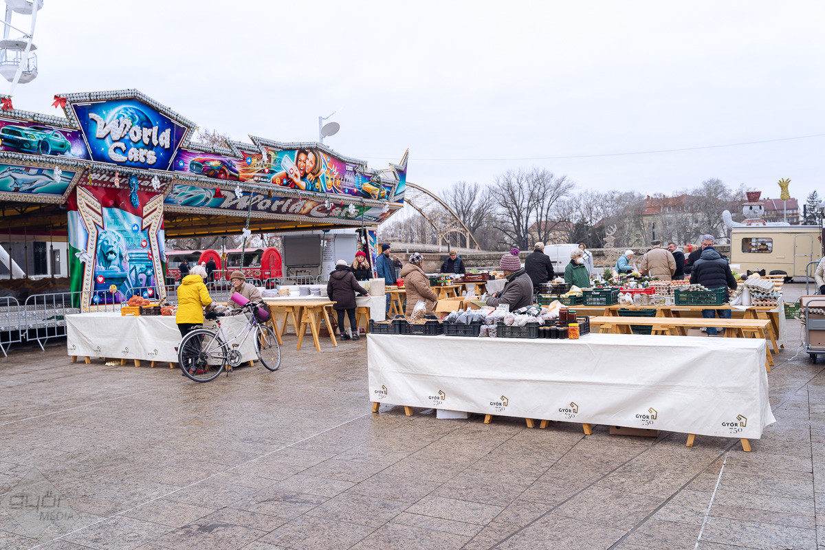 A Dunakapu téren ezúttal adventi forgatagban, de a szokásoknak megfelelően szombaton és szerdán várják a vásárlókat. Kaphatunk finom füstölt árukat, házisajtokat, a Kisalföldön termett zöldséget, gyümölcsöt, savanyúságot, valamint háztartási eszközöket és ruhaneműt is, miközben megnézhetjük a korcsolyázókat vagy az óriáskerekezőket, és forralt bort is ihatunk.