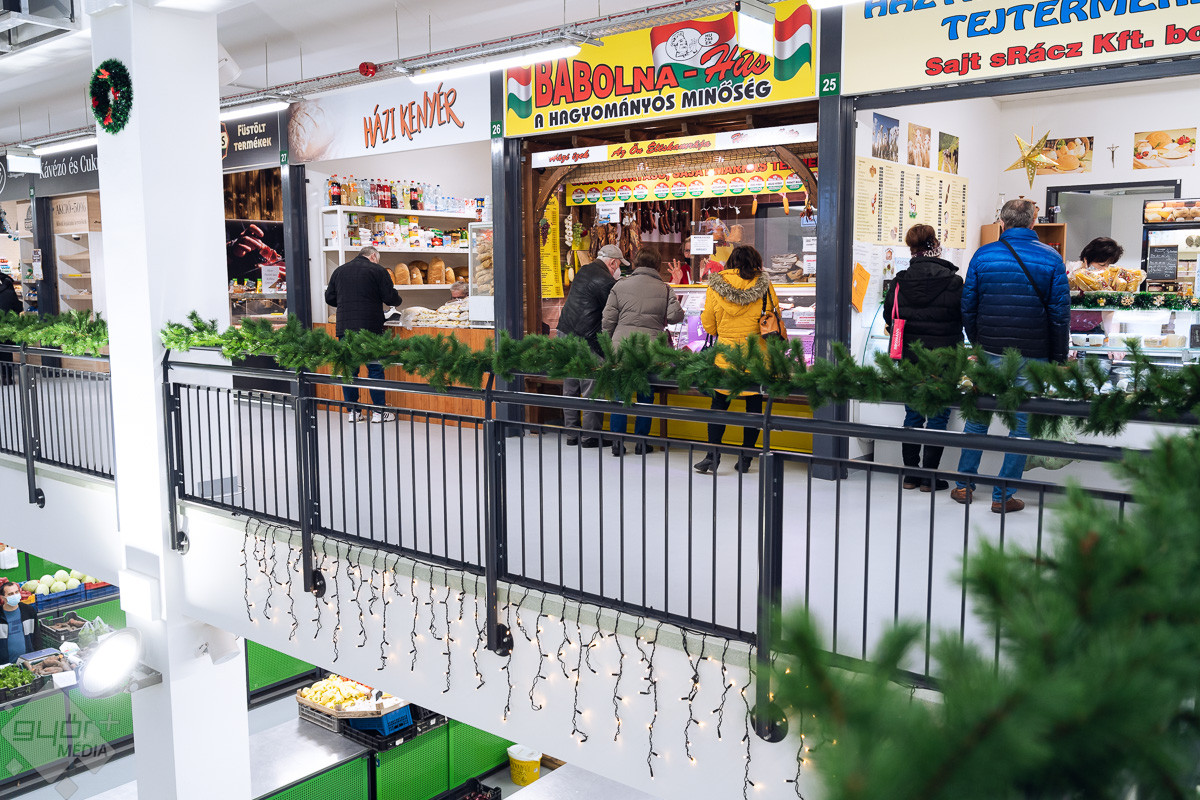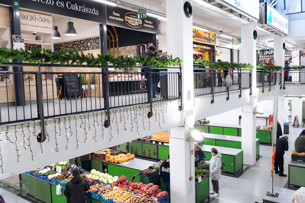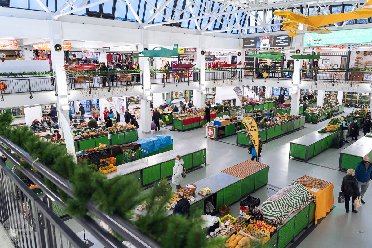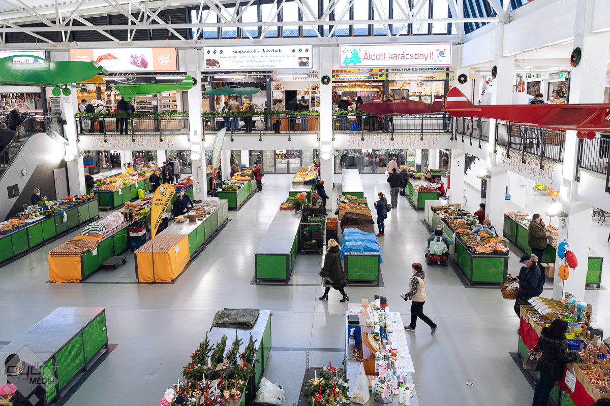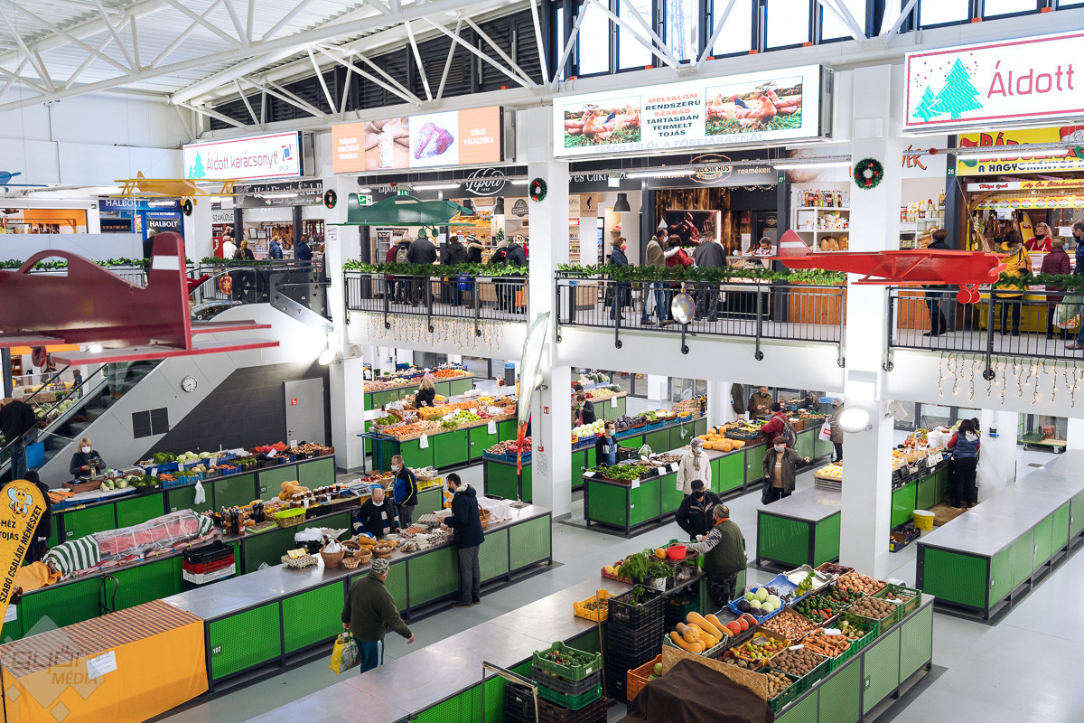 Dió, mogyoró, mandula, déligyümölcsök, primőr áruk – ebben az időszakban a legkeresettebbek. Bő kínálat van a halfélékből, a pontytól a pisztrángon át a lazacig mindenféle kapható, sőt még különböző halászlevelet is vásárolhatunk. A kocsonyához, a húsleveshez, a vadsültekhez vagy éppen a szárnyasétkekhez valók is frissen beszerezhetők éppúgy, mint a füstölt áruk a vásárcsarnoki húsüzletekben, kiváló minőségben. A pékségek is az ünnephez illő kínálattal várják a vásárlókat, a bejglik, a diós, a mákos, a gesztenyés sütemények sem hiányoznak a pultokról. A mintegy 40 állandó üzlet mellett a napokban még közel száz árus kínálatából válogathatunk.