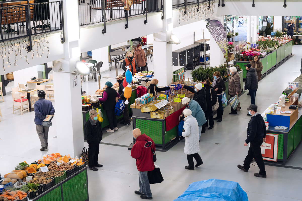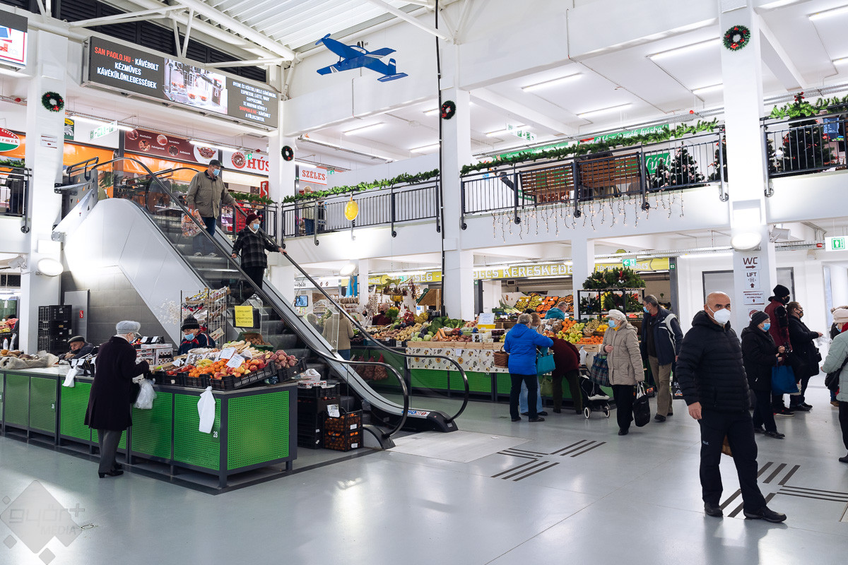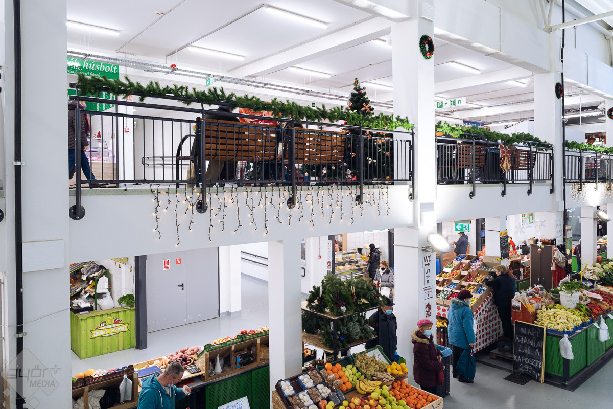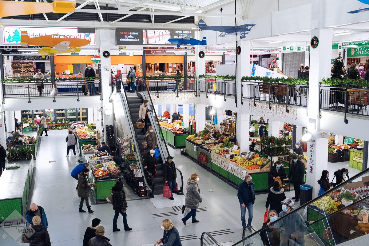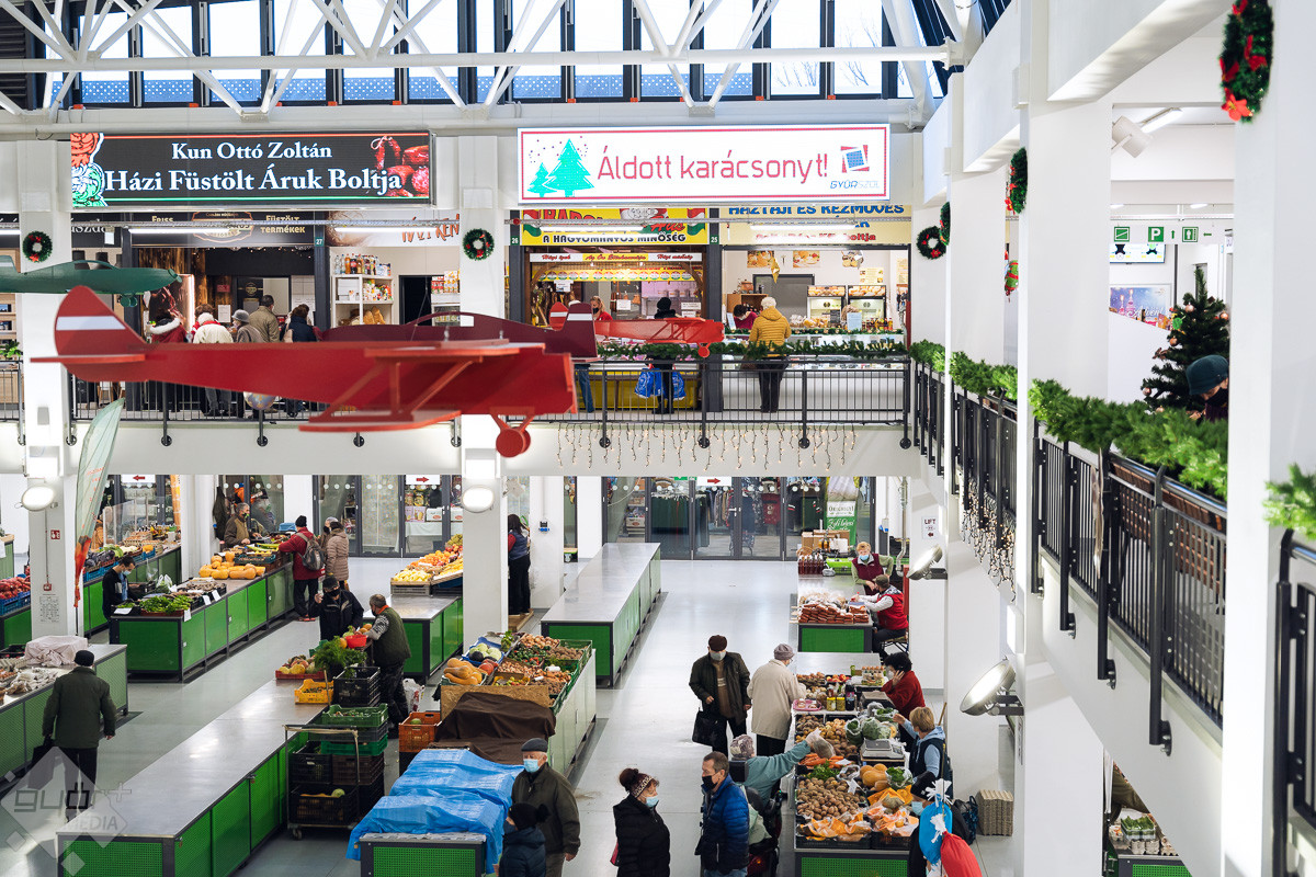 Dió, mogyoró, mandula, déligyümölcsök, primőr áruk – ebben az időszakban a legkeresettebbek. Bő kínálat van a halfélékből, a pontytól a pisztrángon át a lazacig mindenféle kapható, sőt még különböző halászlevelet is vásárolhatunk. A kocsonyához, a húsleveshez, a vadsültekhez vagy éppen a szárnyasétkekhez valók is frissen beszerezhetők éppúgy, mint a füstölt áruk a vásárcsarnoki húsüzletekben, kiváló minőségben. A pékségek is az ünnephez illő kínálattal várják a vásárlókat, a bejglik, a diós, a mákos, a gesztenyés sütemények sem hiányoznak a pultokról. A mintegy 40 állandó üzlet mellett a napokban még közel száz árus kínálatából válogathatunk.
