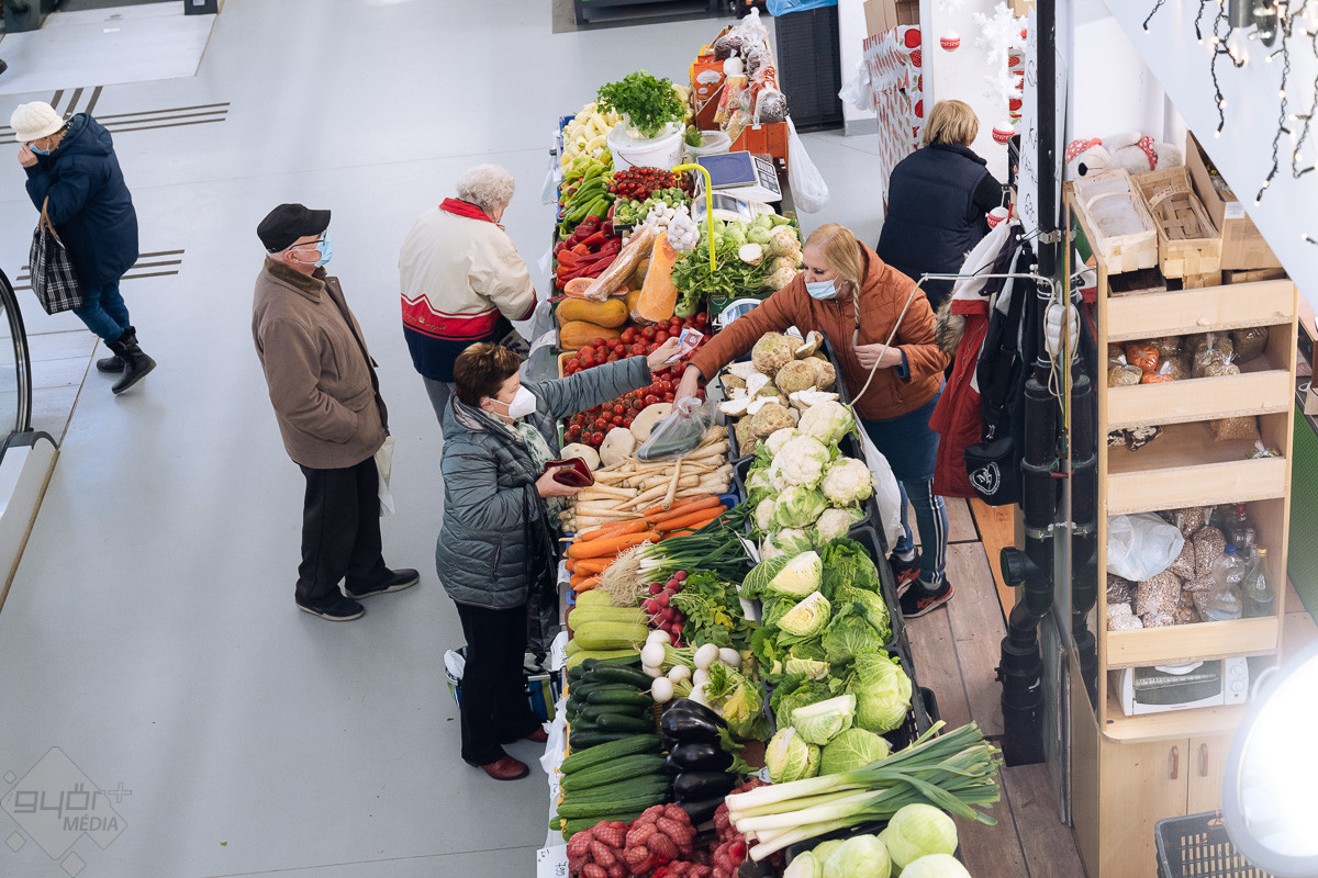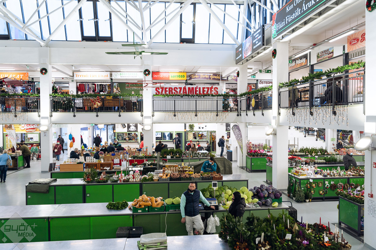 Tetőfokához érkezhet a karácsonyi bevásárlási roham a napokban a győri piacokon is. Az ünnepi asztalra szánt hozzávalókból, ételekből, zöldség-gyümölcsből, valamint az ajándéktárgyakból sincs hiány, sem a vásárcsarnokban, sem a Dunakapu téri piacon.