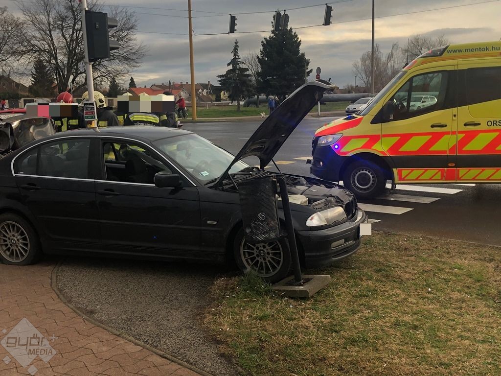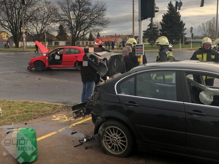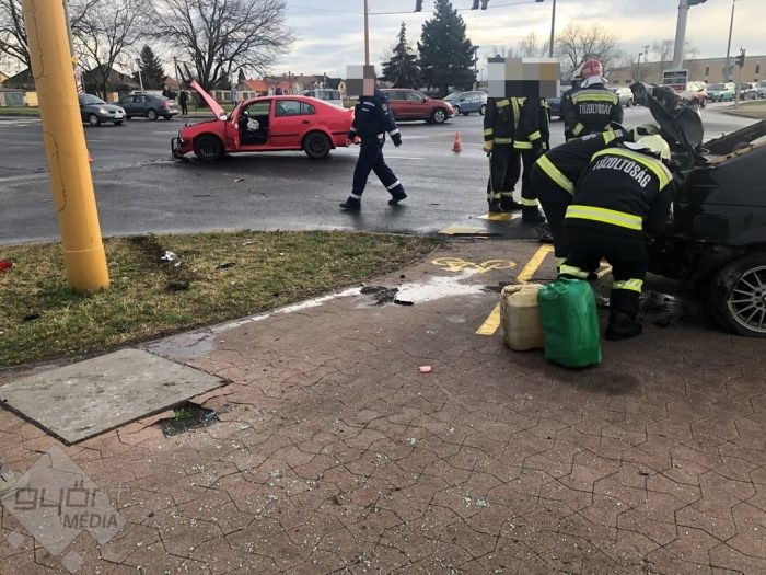 Két gépkocsi ütközött össze Győrben, a Tihanyi Árpád út és a Szauter Ferenc utca kereszteződésében.