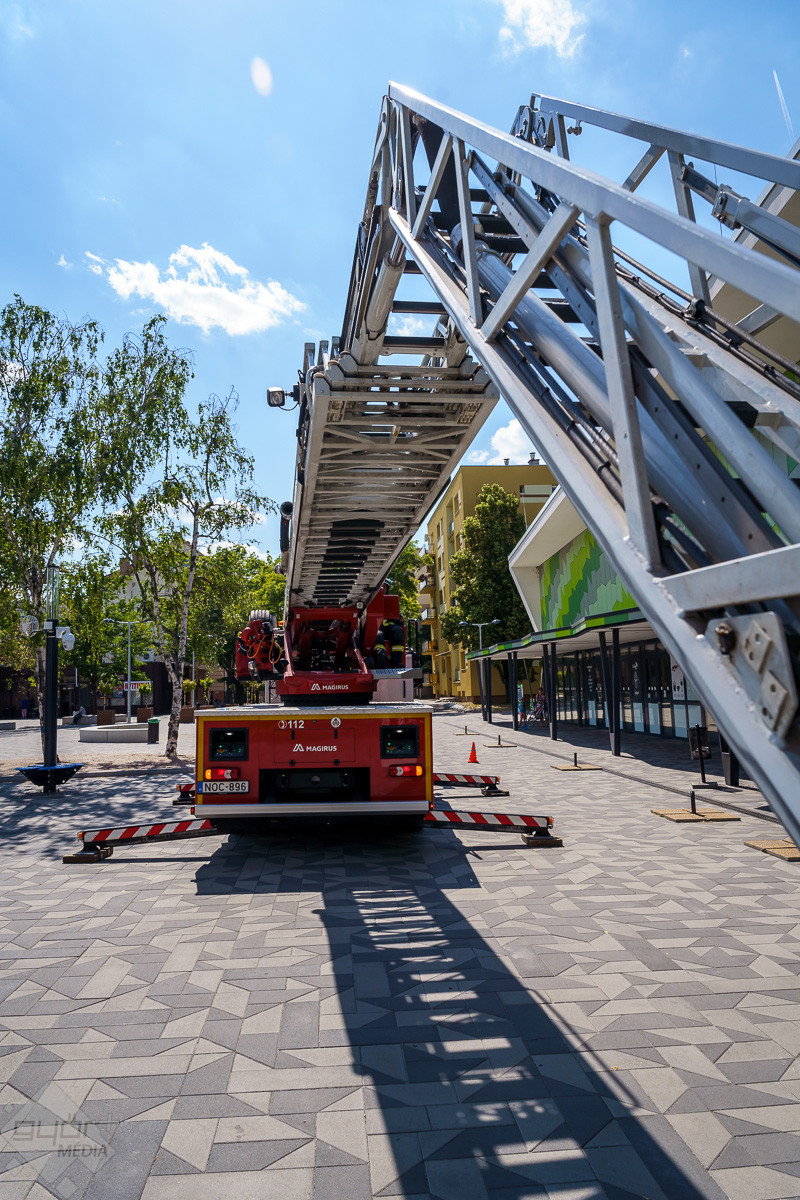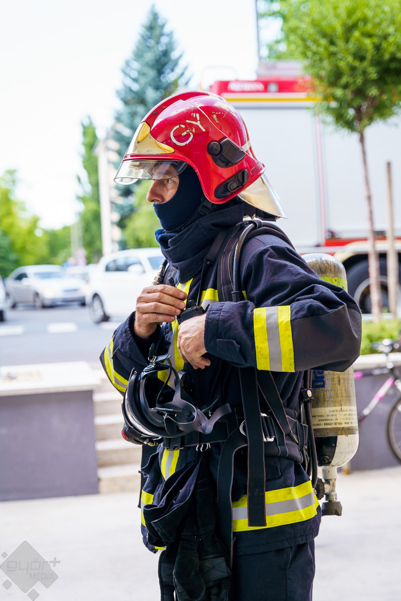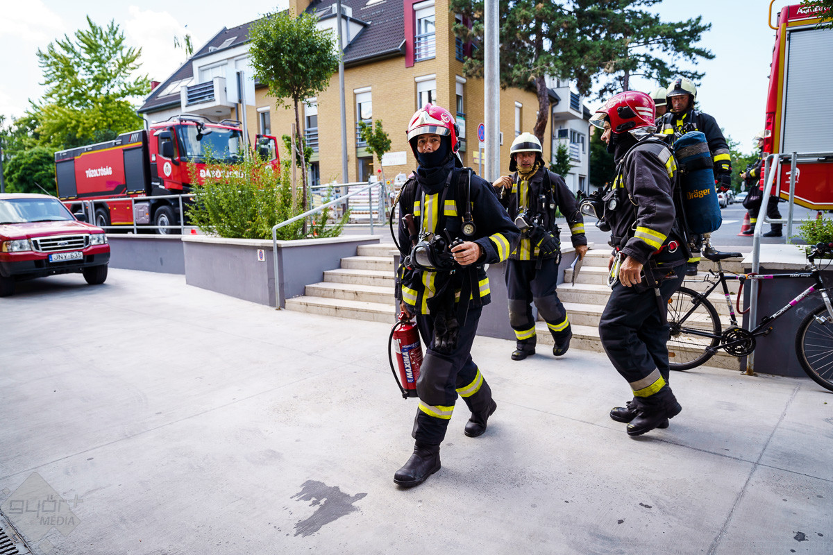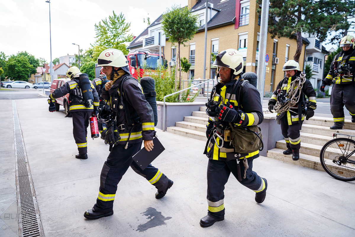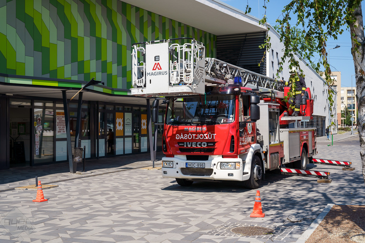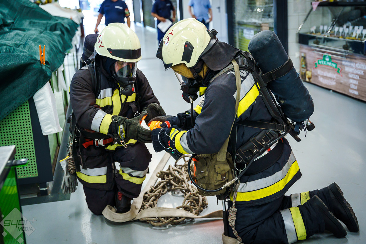 A mostani gyakorlaton az életmentést, a légzőkészülékben történő feladat végrehajtást, a sugár és táplálásszerelést, az EDR rádión történő szabályos kommunikációt, valamint a tűzoltásvezetői feladatok megvalósulását is gyakorolták a vásárcsarnok területén egy feltételezett káreseménynél a győri és a pannonhalmi hivatásos tűzoltók.