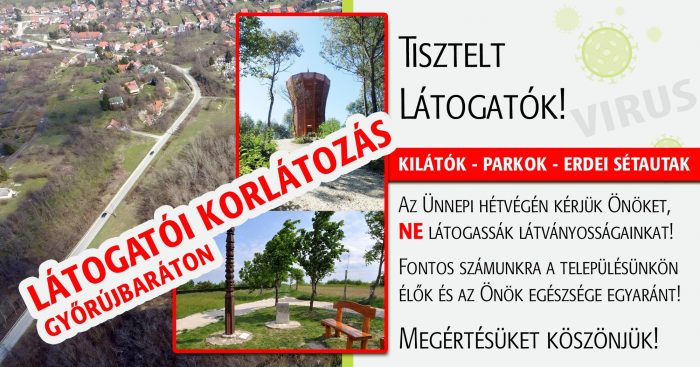 „ Győrújbarát Község és a környék lakóinak védelme érdekében, csatlakozva több más település felhívásához, kérjük Önöket, hogy népszerű látogatóhelyeinket, látványosságainkat, természeti és épített örökségeinket NE látogassák az ünnepi hétvégén.