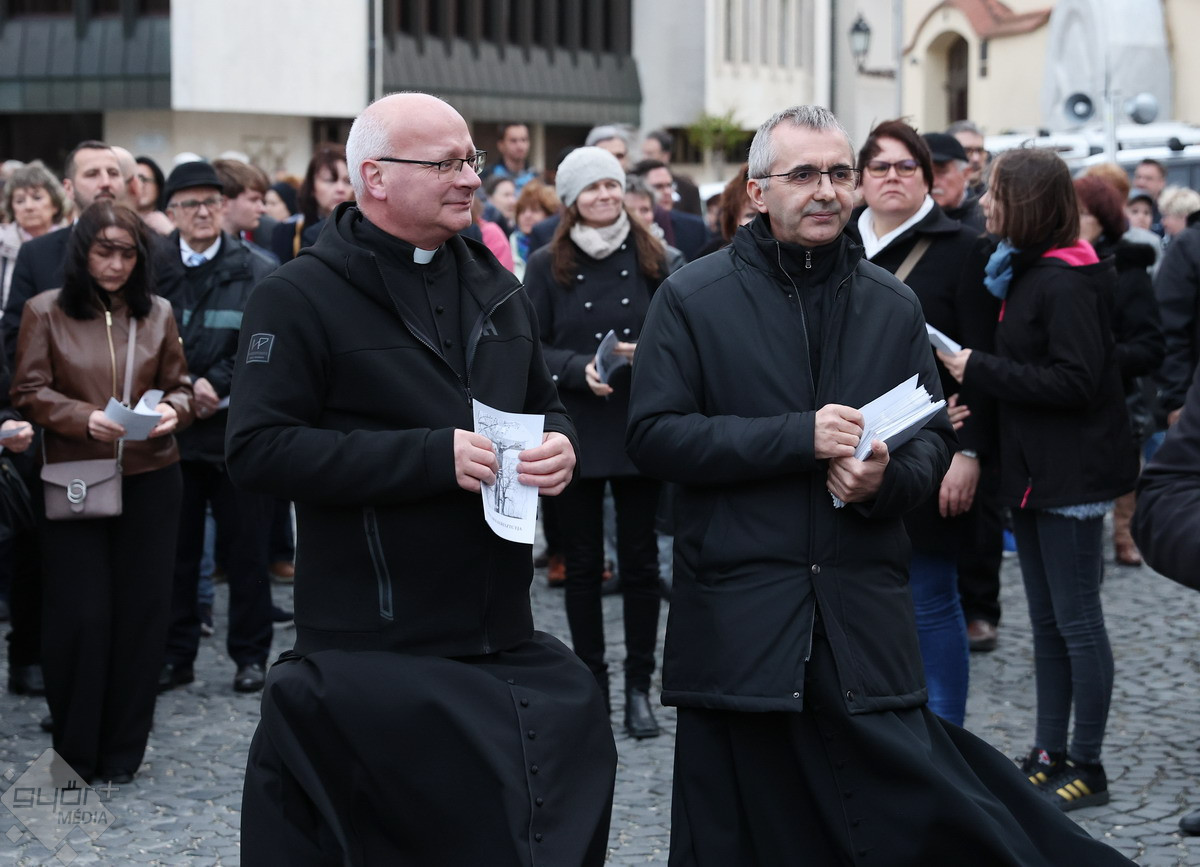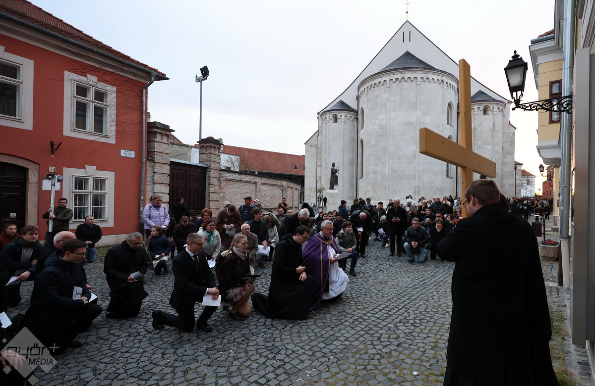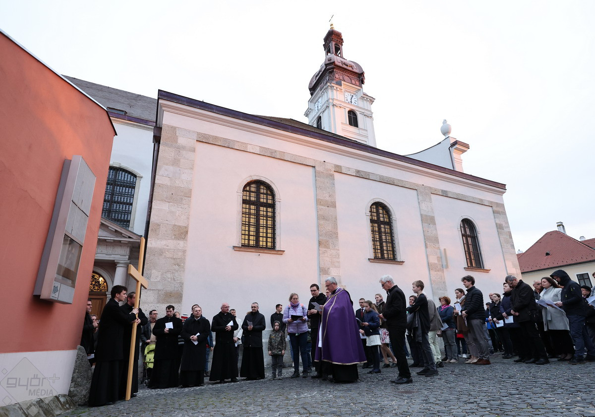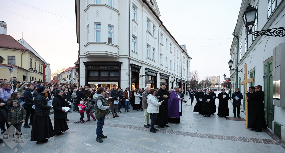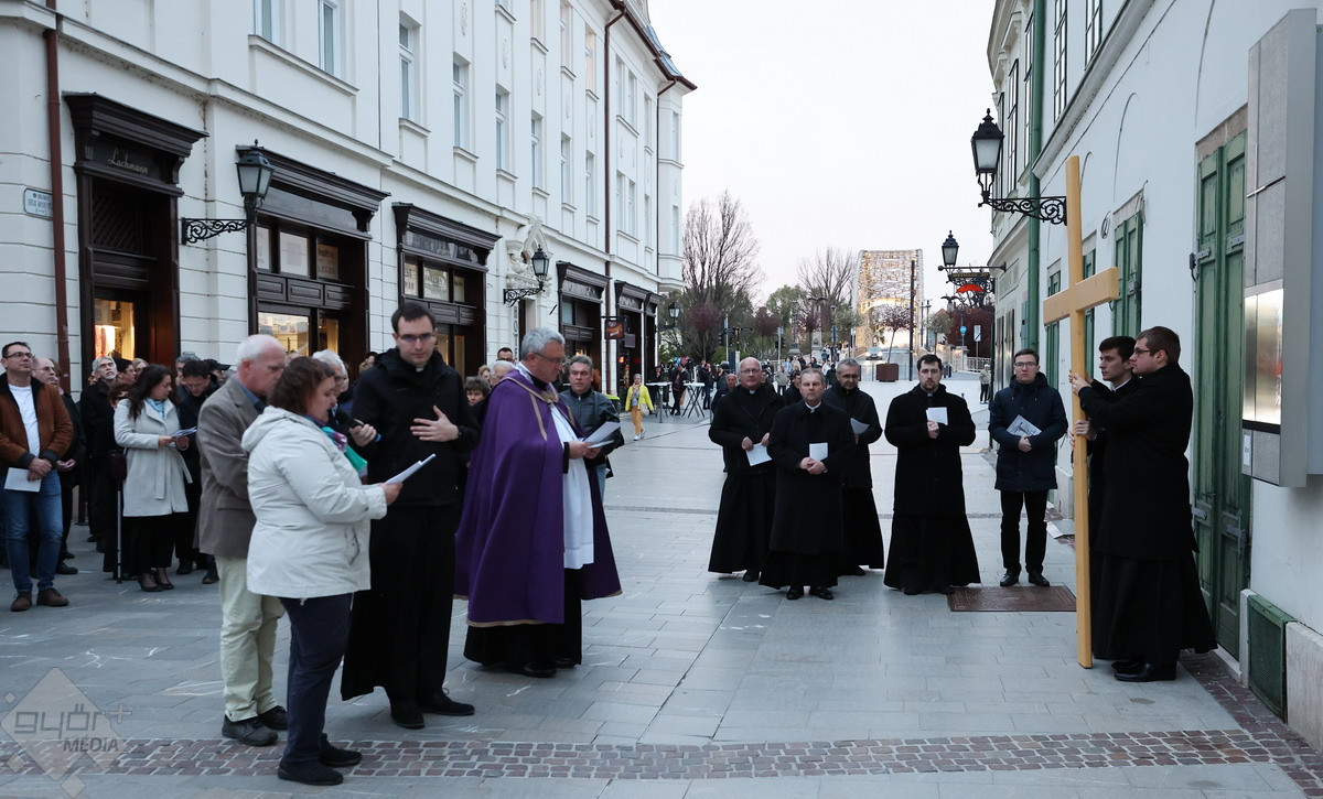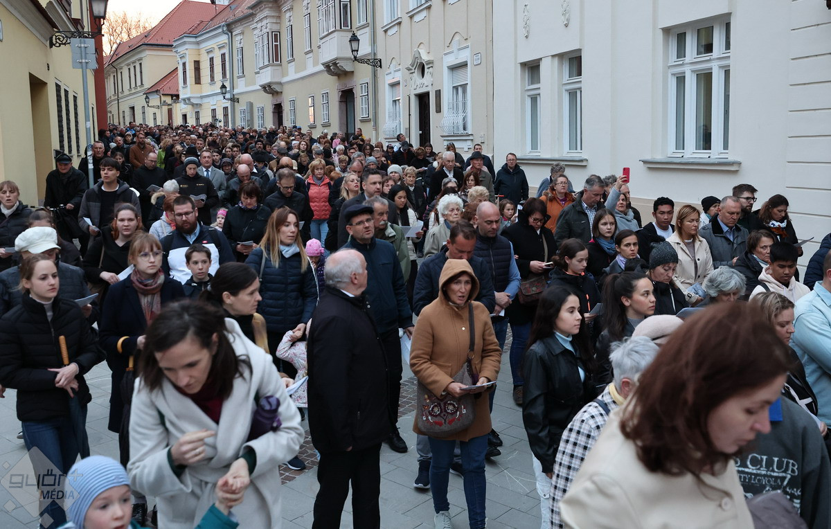 Az este hat órakor kezdődő szertartást ezúttal is dr. Veres András megyéspüspök vezette. Idén is rengetegen emlékeztek és imádkoztak együtt a belváros szívében, így szegődve a keresztet hordozó Jézus nyomába. Megteltek a belváros szűk utcai a keresztútjáró hívőkkel.