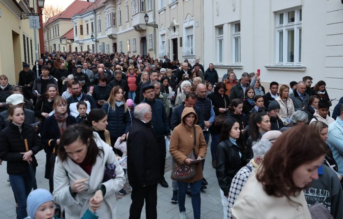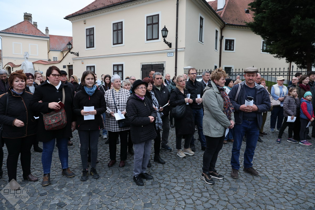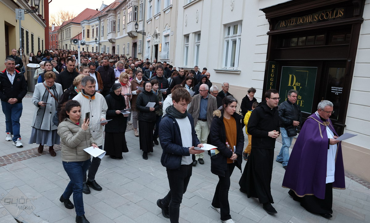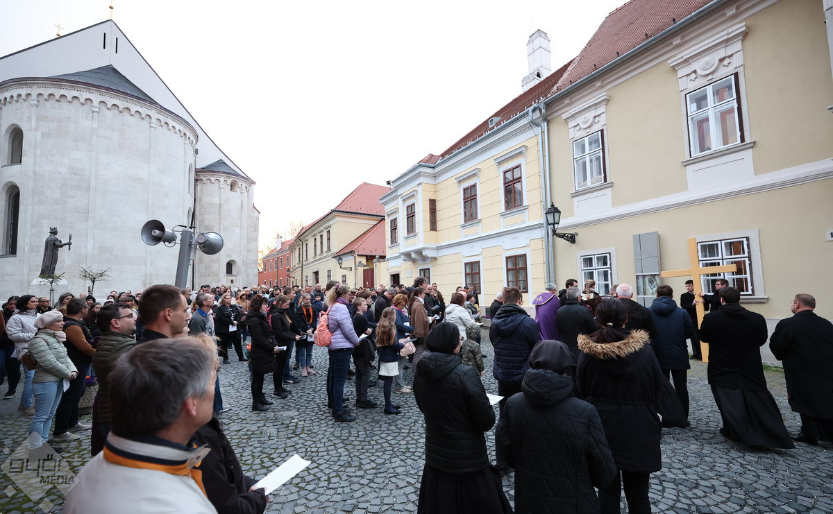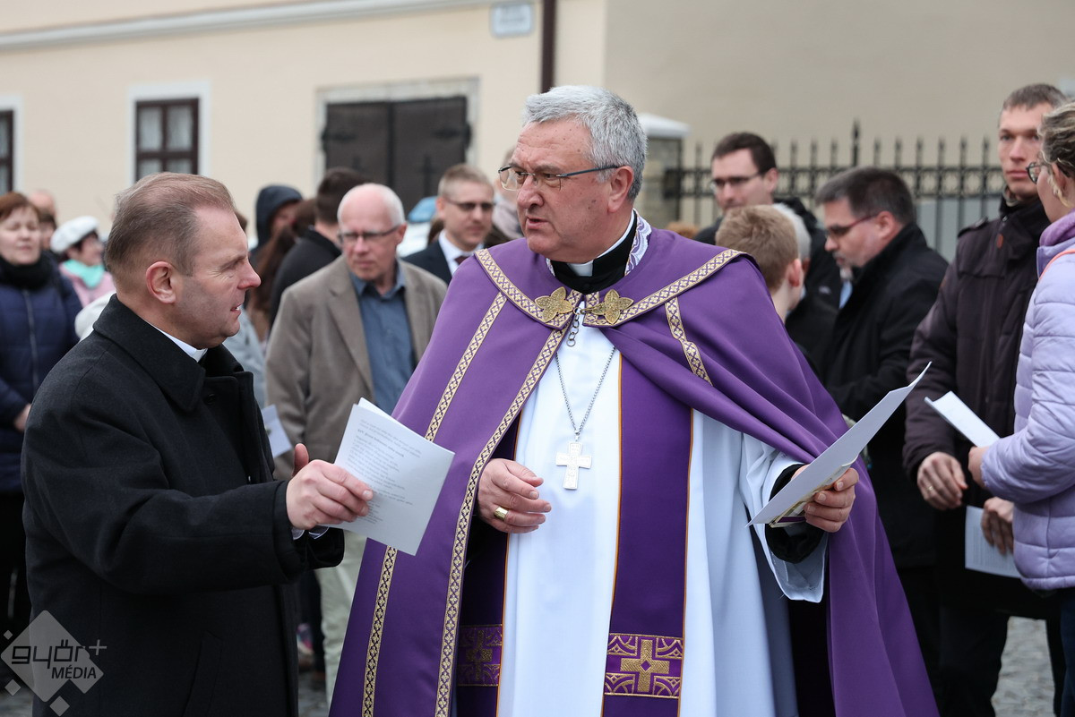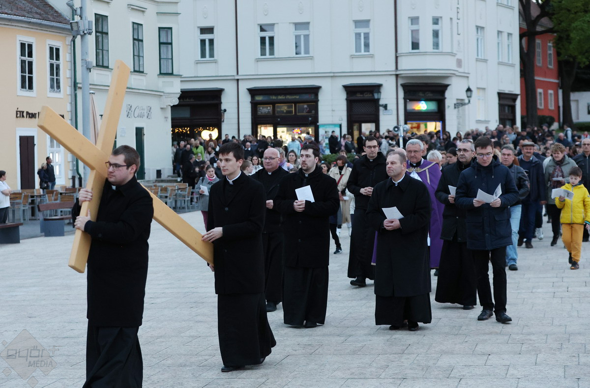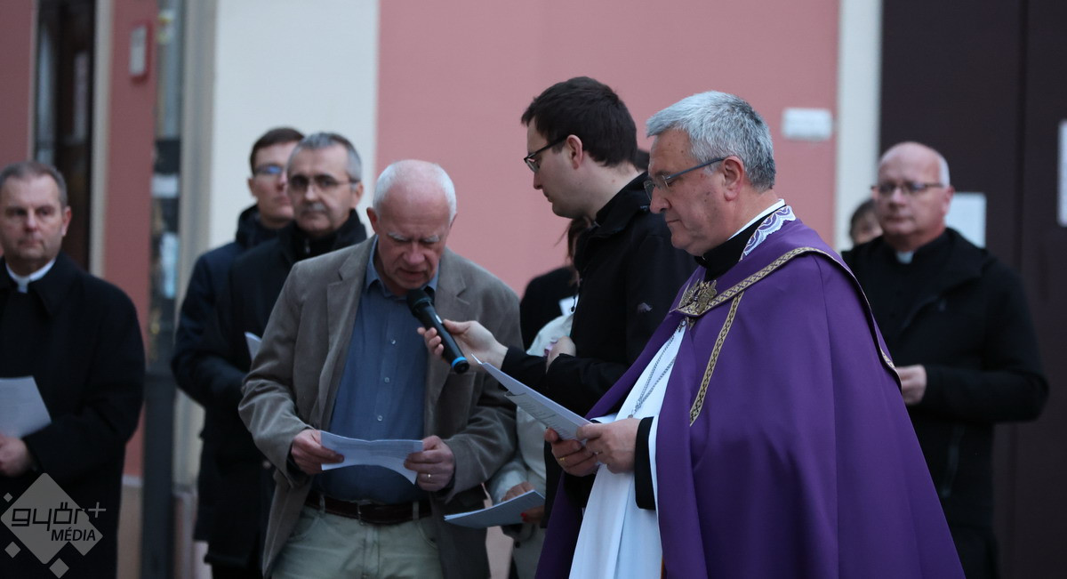 Az este hat órakor kezdődő szertartást ezúttal is dr. Veres András megyéspüspök vezette. Idén is rengetegen emlékeztek és imádkoztak együtt a belváros szívében, így szegődve a keresztet hordozó Jézus nyomába. Megteltek a belváros szűk utcai a keresztútjáró hívőkkel.