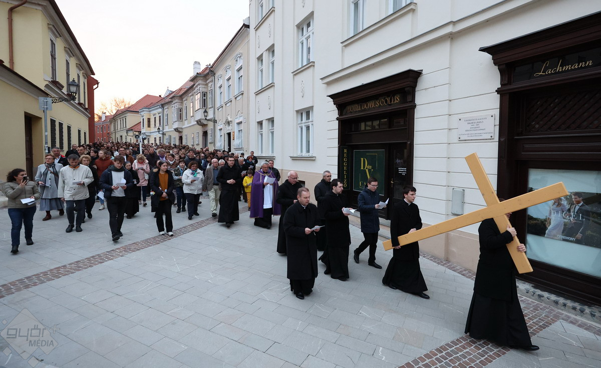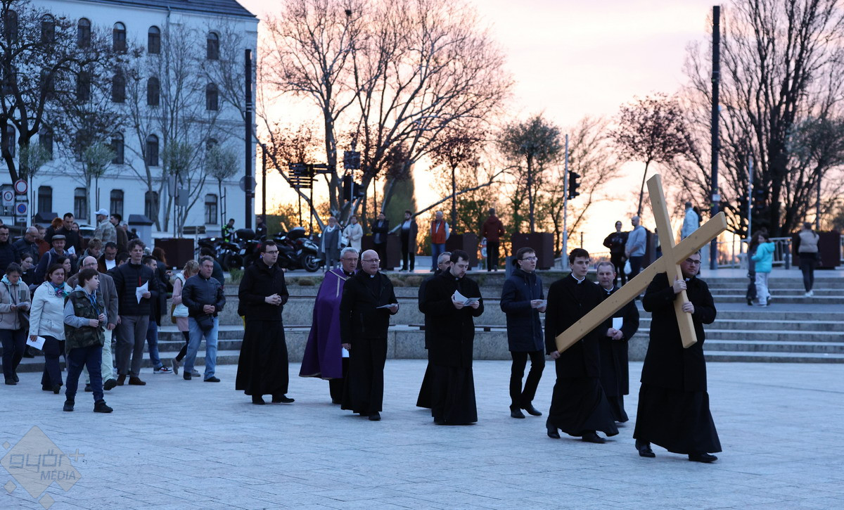 Jézus kereszthalálának napján, Nagypénteken idén is több száz hívő járta körbe a győri keresztutat. A menet hagyományosan a Káptalandombról indult.