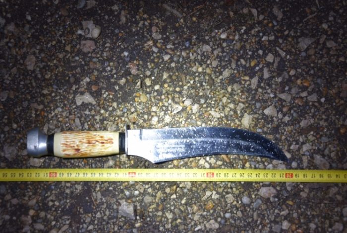 A kiérkező rendőrök megállapították, hogy három férfi – vélhetően egyikük barátnője miatt – hangos szóváltásba keveredett egymással, amelynek során egy 24 éves helyi lakos a kabátjából egy kést rántott elő, azt magasba emelve – és kardozó mozdulatokat téve – fenyegette meg a veszekedésben részt vevőket.
