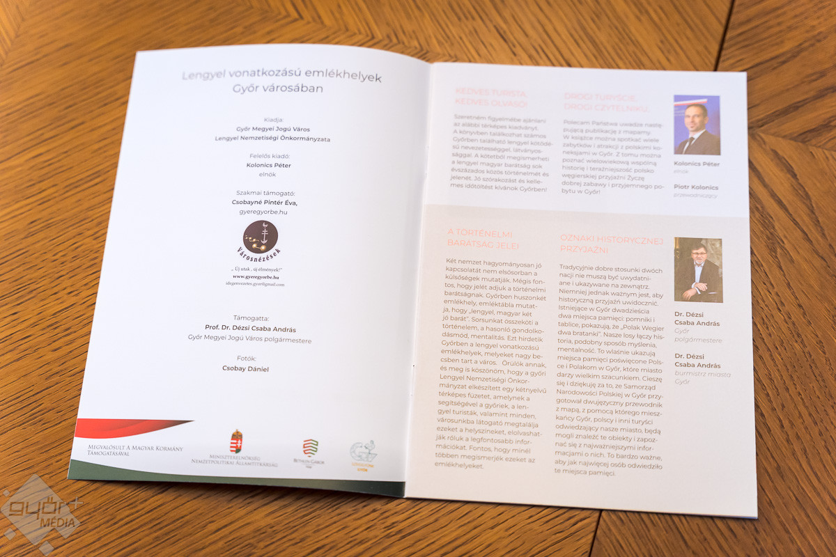 A Győrben fellelhető, lengyel vonatkozású emlékhelyekről készült kiadványt mutattak be a városházán. Az eseményen részt vett Andrzej Kalinowski lengyel konzul, dr. Dézsi Csaba András polgármester, dr. Pergel Elza alpolgármester, valamint Kolonics Péter, a lengyel nemzetiségi önkormányzat elnöke.