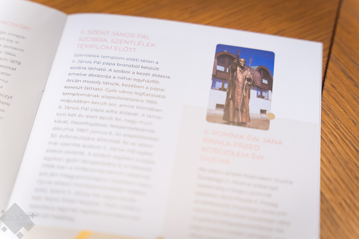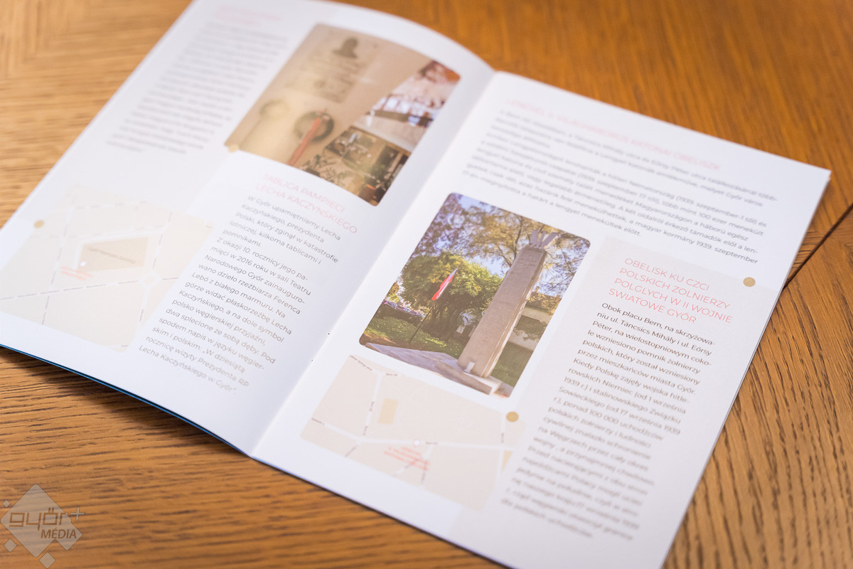 A „Lengyel vonatkozású emlékhelyek Győr városában” című két nyelvű, térképrészletekkel ellátott füzetet haszonnal forgathatják az ide látogató lengyel turisták, valamint az itt élők is. A fellelhető huszonkét emlékhely, illetve emléktábla közül a kiadvány tizenhatot tartalmaz. Többek között megismerhetjük belőle a Lengyel-Magyar Barátság emlékmű, a Lech Kaczynski emlékkő, és emléktábla, a lengyel II. világháborús katonai obeliszk, a Bem József, valamint a lengyel katonai emléktábla történetét és pontos helyszínét.”
