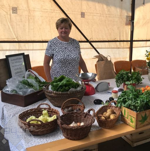 A dinnyés furgon is megjelent, emelett a sajtok és a húsáru is népszerűek voltak a piacon. Ezúttal azonban a zöldség-gyümölcs pultnál várakoztak a legtöbben. “Amit mi a kertbe megtermelünk, azt árusítjuk, ez a szlogenünk is: Mintha a kertjében szedte volna. Hoztam ma céklát, padlizsánt, nagyon szeretném, ha a mángoldot minél többen megismernék, rebarbara, spenót, sárgabarack, ribizli, homoktövis, paprika, leveszöldség.” – tájékoztatott Drexlerné Balogh Éva, aki a piac rendszeres kofája.