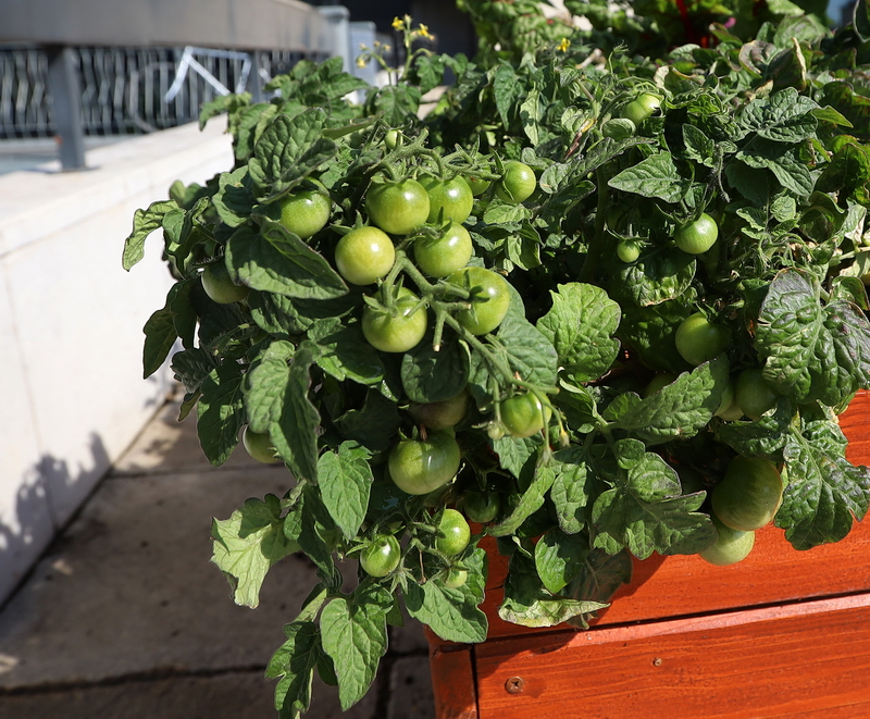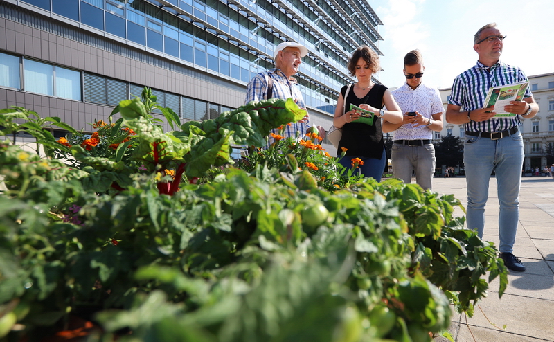 A Megyeháza téren felállított ládákba ültettek például sarkantyúkát, amely a levéltetveket „szedi össze”, a büdöske pedig a csigát csalogatja magához, megvédve ezzel a többi termést. Az ágyásokba folyton termő epret, mángoldot, paprikát és balkonparadicsomot ültettek. Nagykutasi Viktor, a Kertészek és Kertbarátok Győr Városi Egyesületének elnöke, kertész-szakíró kiemelte, hogy a technológia nem új keletű, napjainkban kezd újra népszerűvé válni, kompakt mérete és előnyei miatt. „Nincs az a kicsi felület, ahol ne lehetne kertészkedni. Segítségével akár egy erkélyen is belevághatunk, a bemutatott darabok egy négyzetméteresek.”