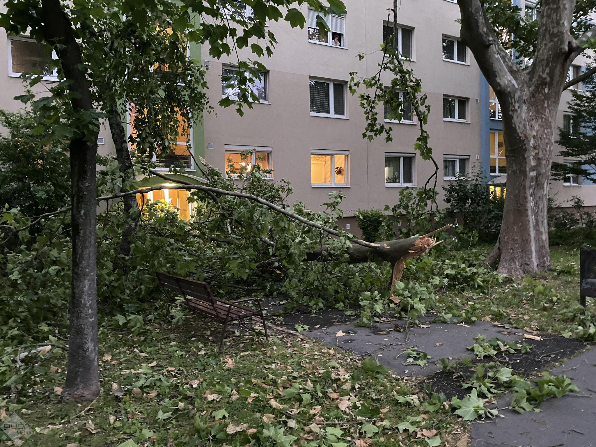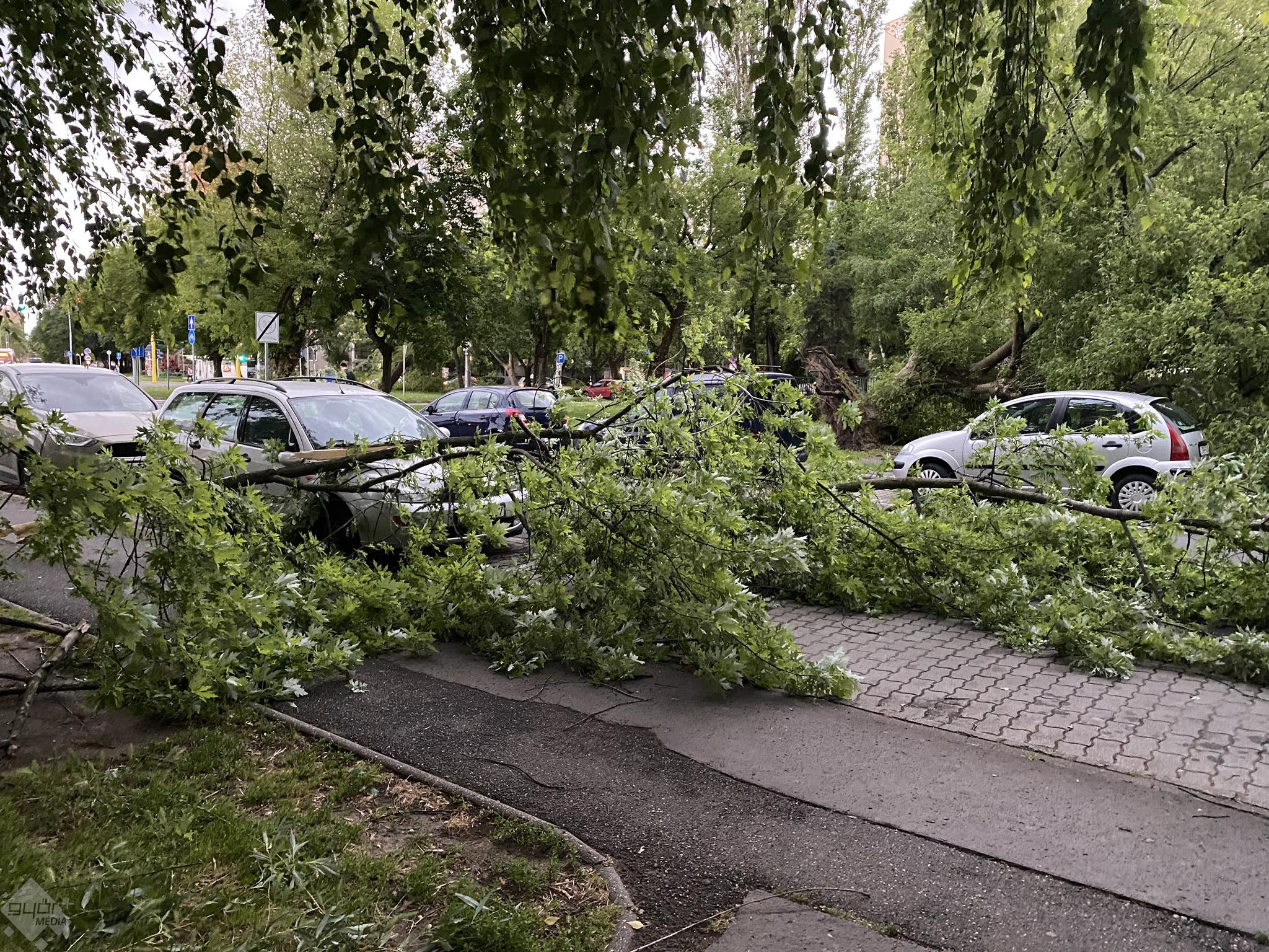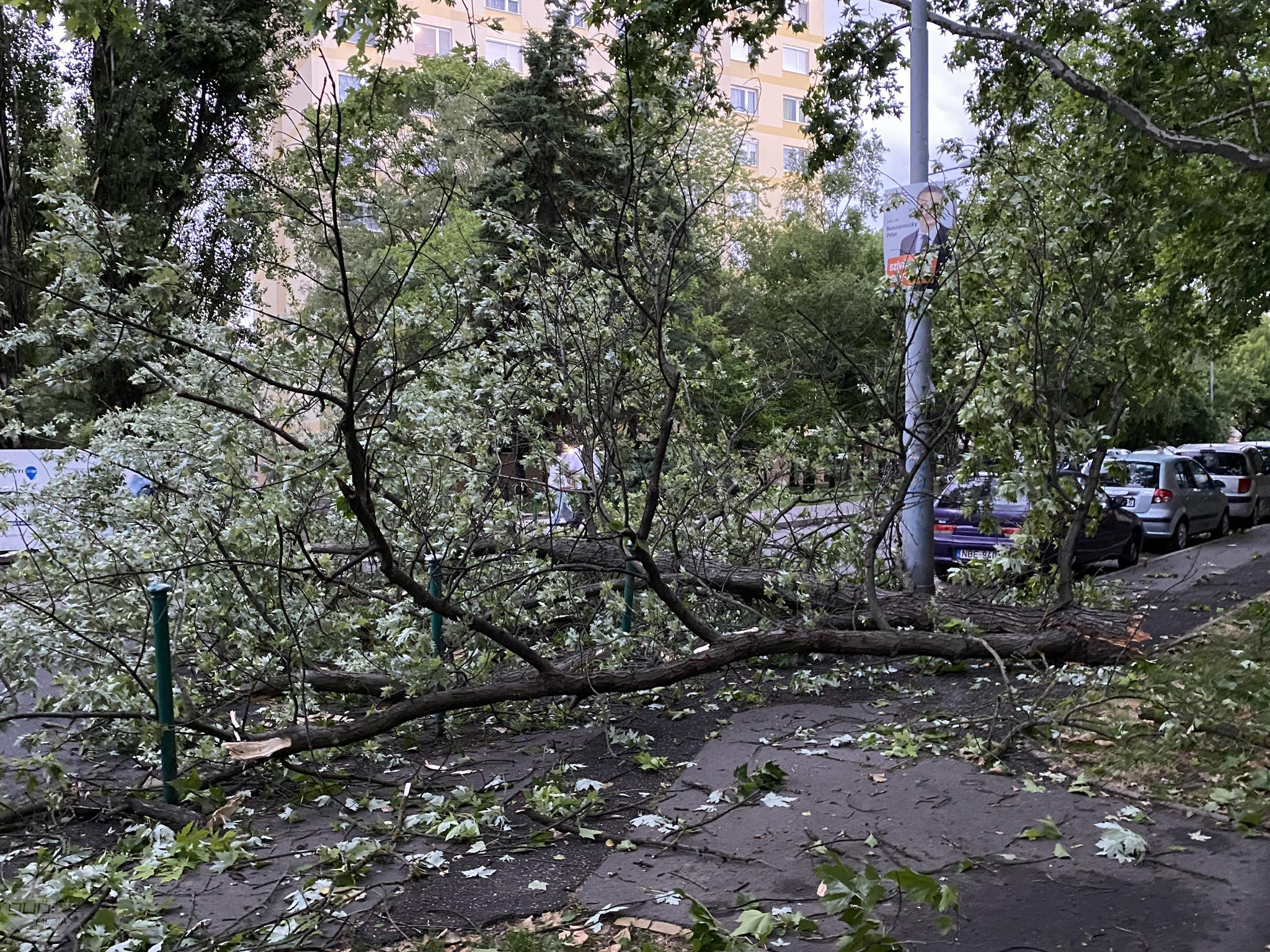 Olvasónk a Szabolcska utcában készítette ezeket a fotókat, ahol a viharos időjárás miatt leszakadt faágak borítják a járdákat és az úttestet, de van olyan fa is, ami gyökerestől fordult ki. A tűzoltók már a helyszínen vannak, ahol feldarabolják és elszállítják a leszakadt ágakat.